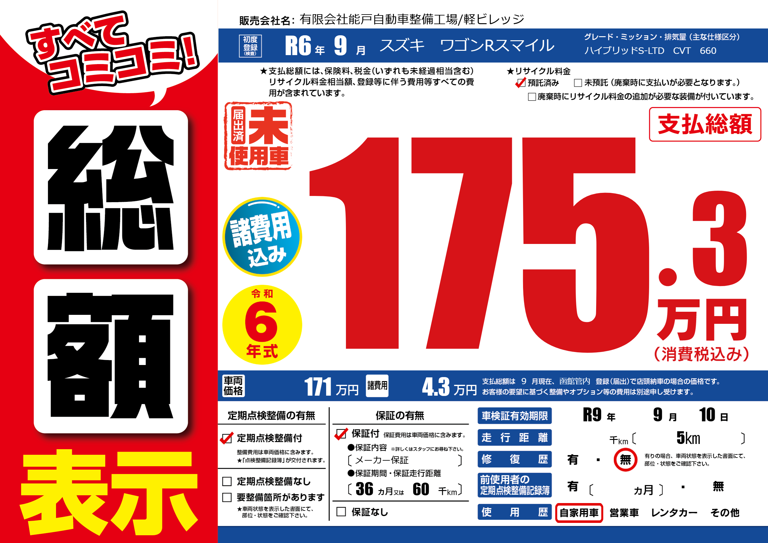 なし | 車検制限 | R9年9月10月 |