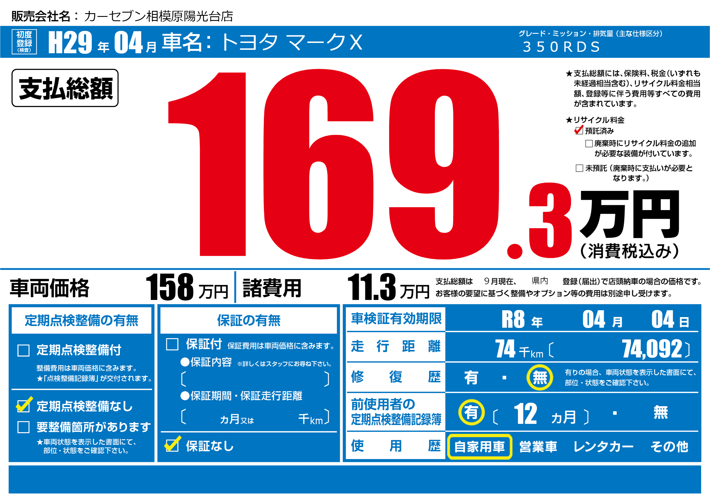 | 車名 | トヨタ マークX | グレード ミッション 排気量 |