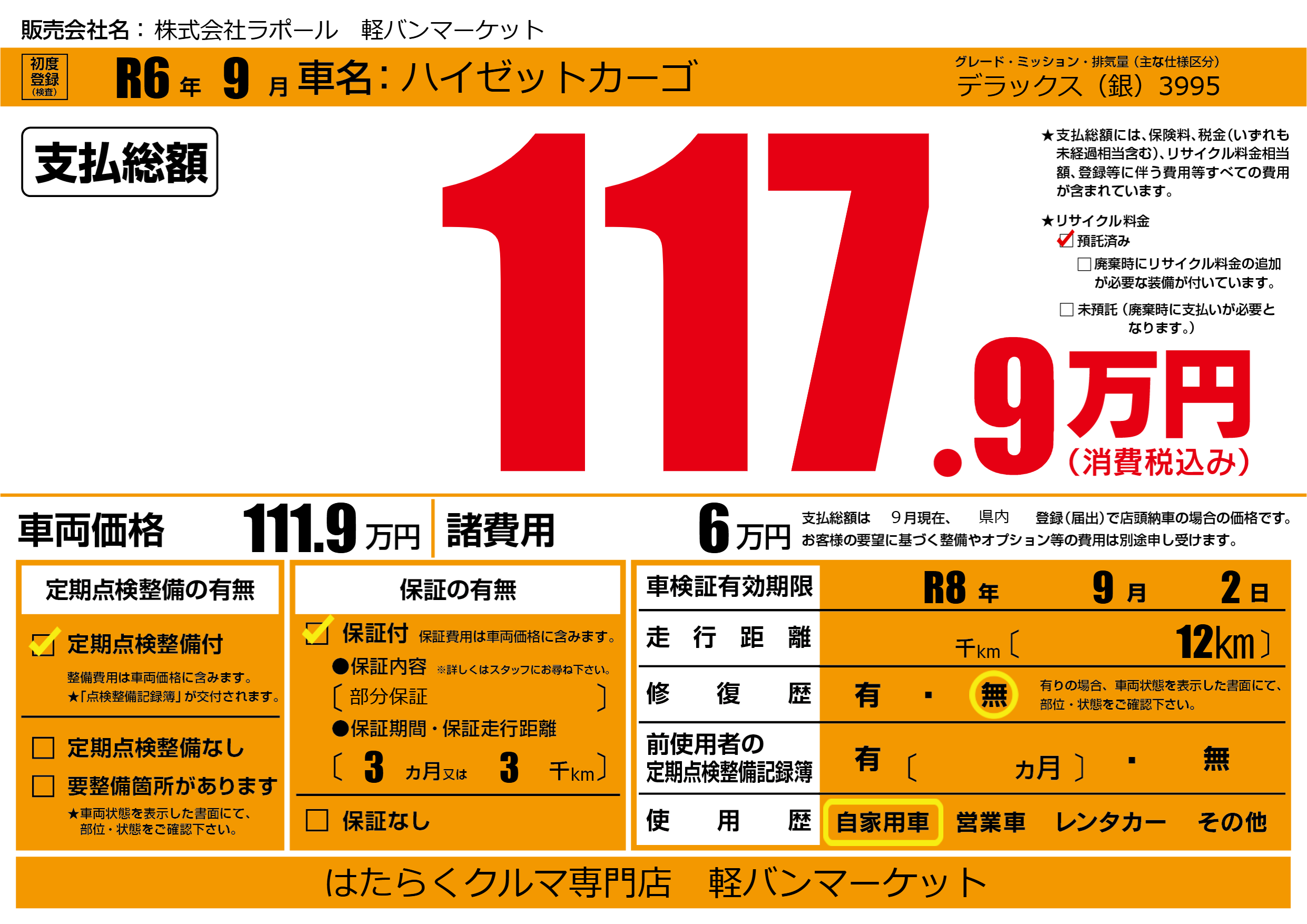 株式会社ラポール 軽バンマーケットの展示車