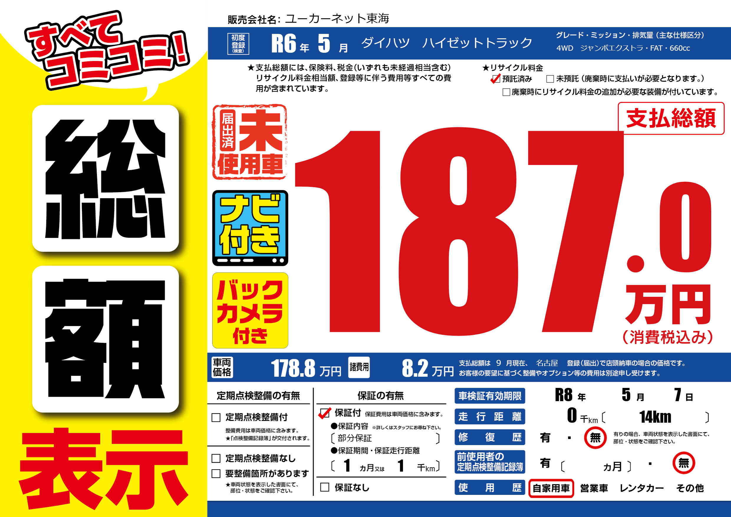 | 走行キロ | - | 初年度登録 | R6年5月 |