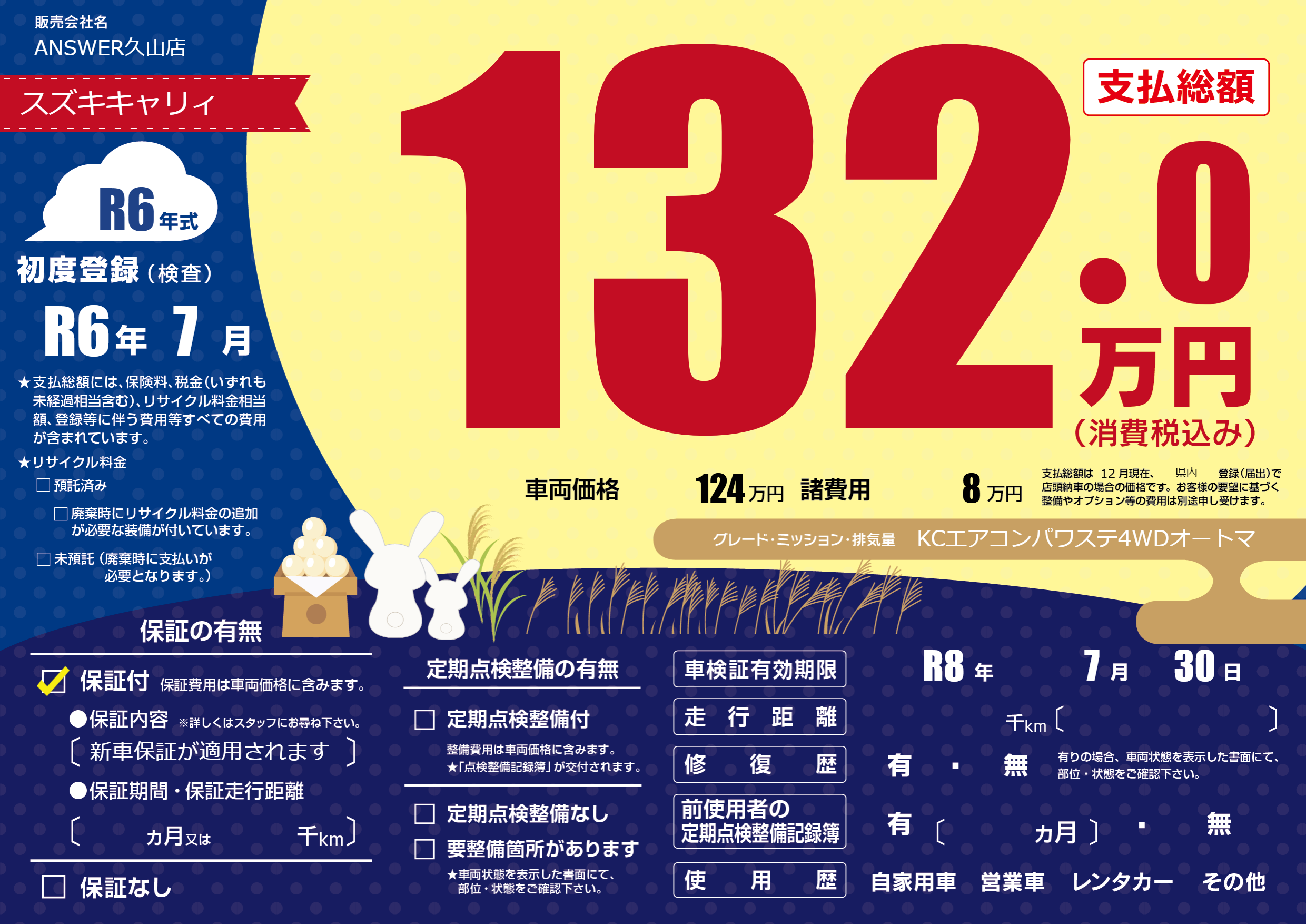 なし | 車検制限 | R8年7月30月 |