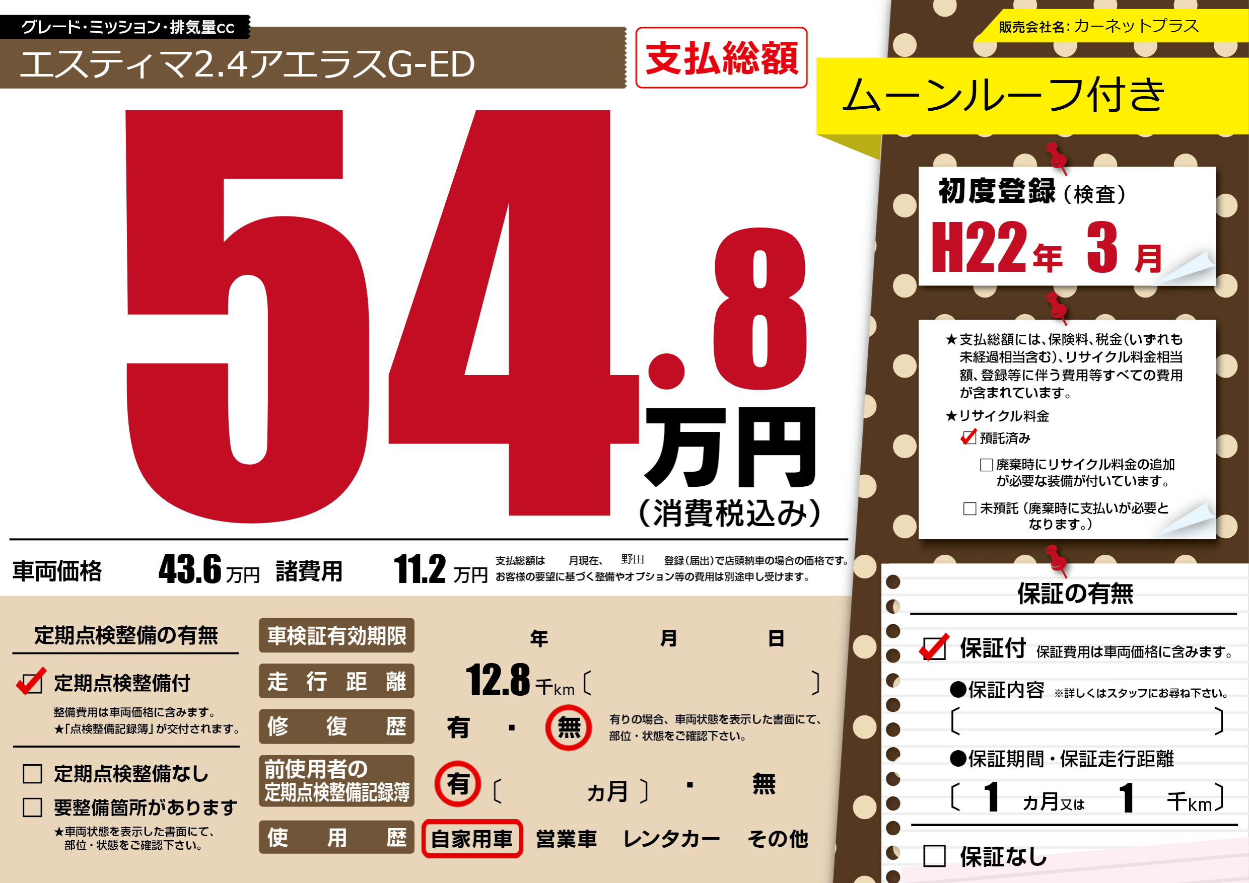 | 走行キロ | 1.2万km | 初年度登録 | H22年3月 |