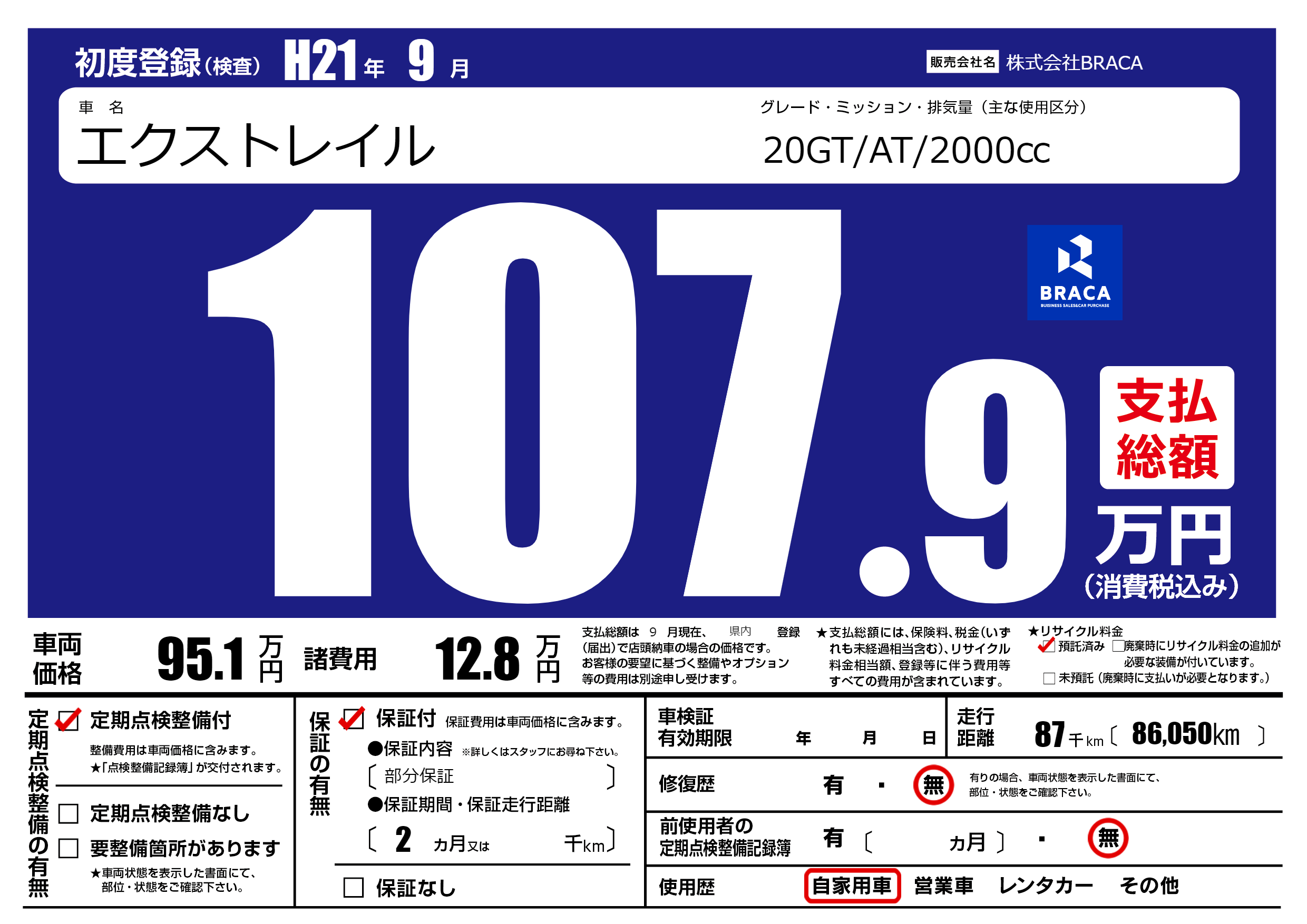 | 定期点検整備 | 定期点検整備あり | ||
