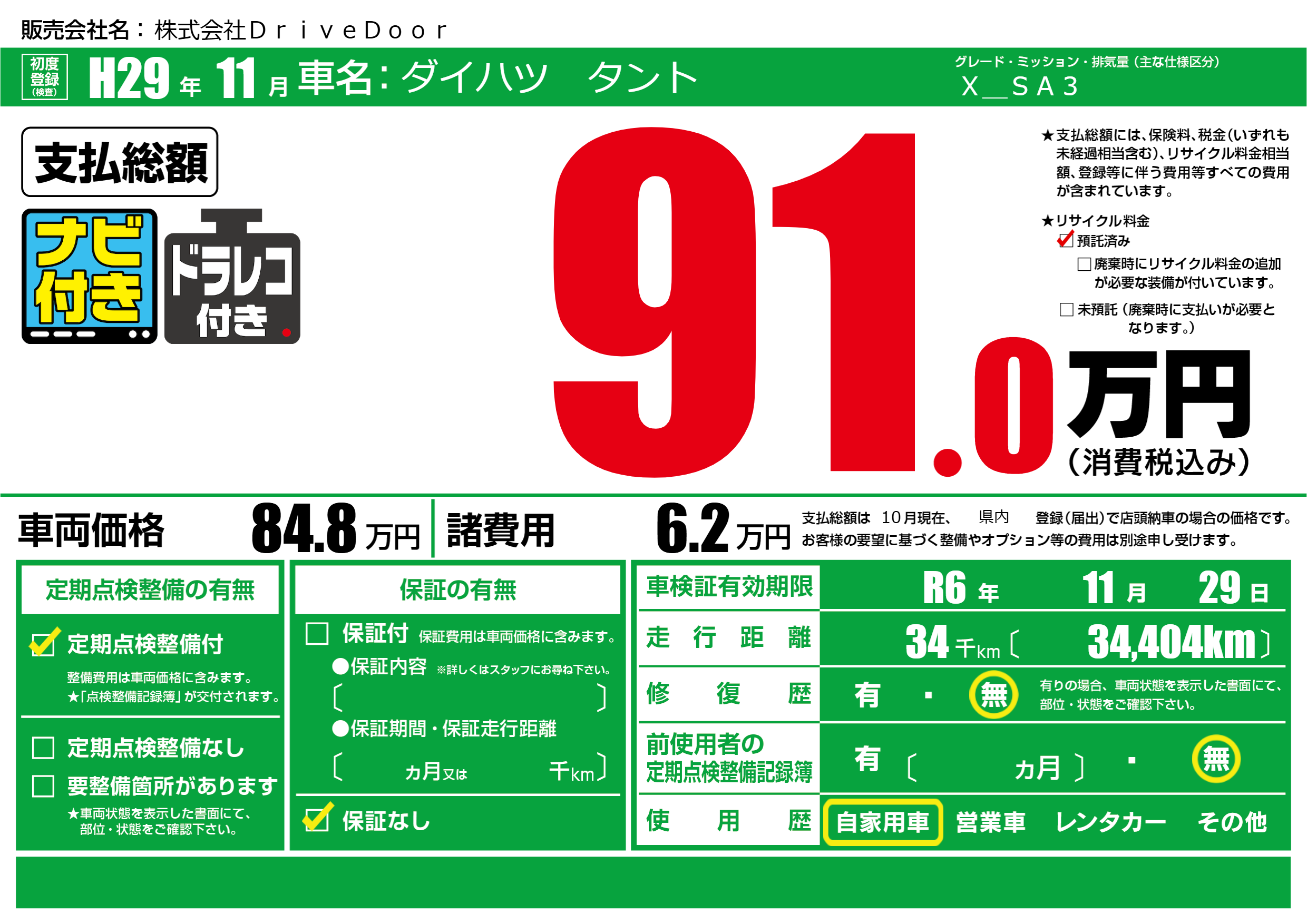 | 走行キロ | 3.4万km | 初年度登録 | H29年11月 |