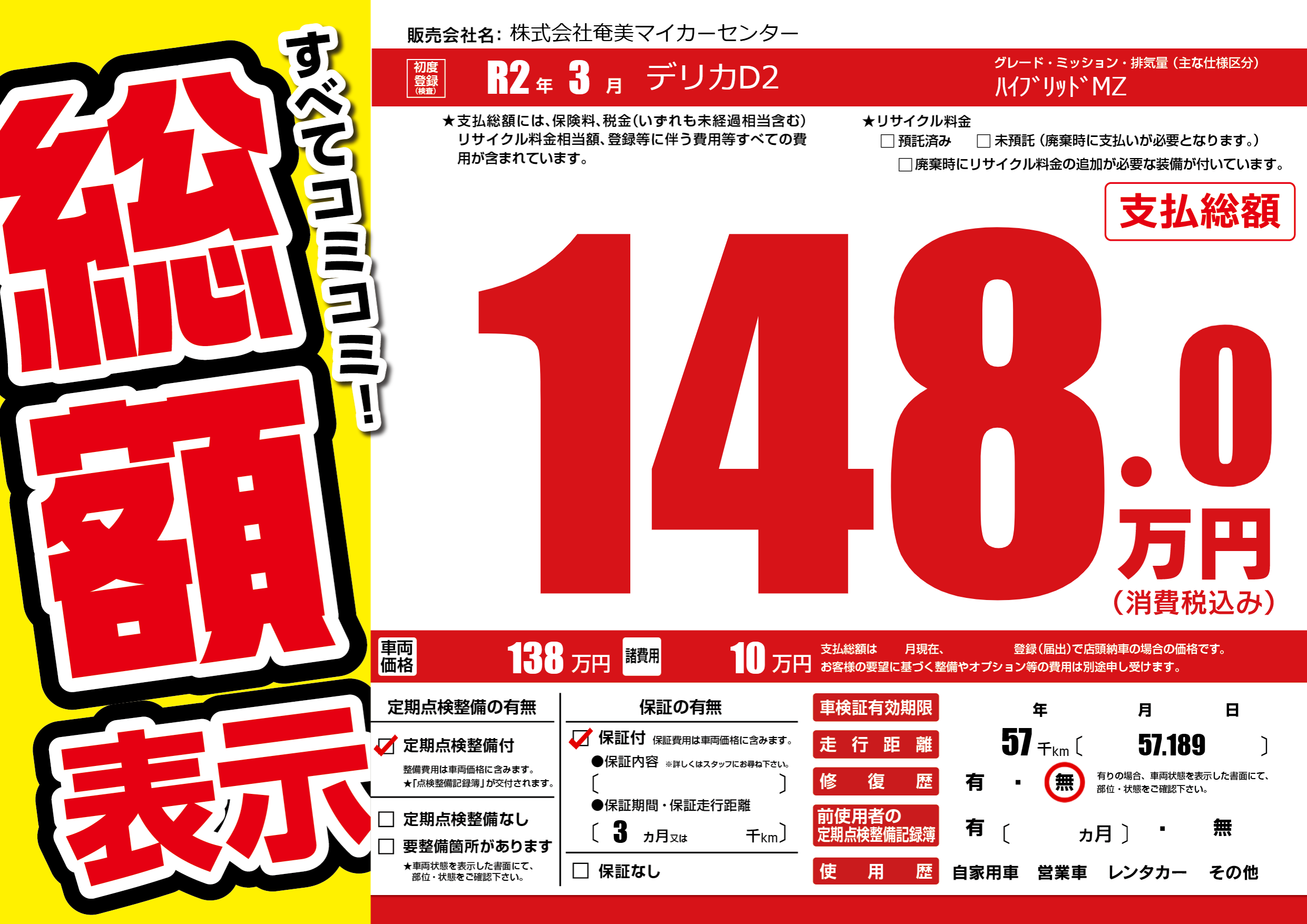 | 車名 | デリカD2 | グレード ミッション 排気量 |