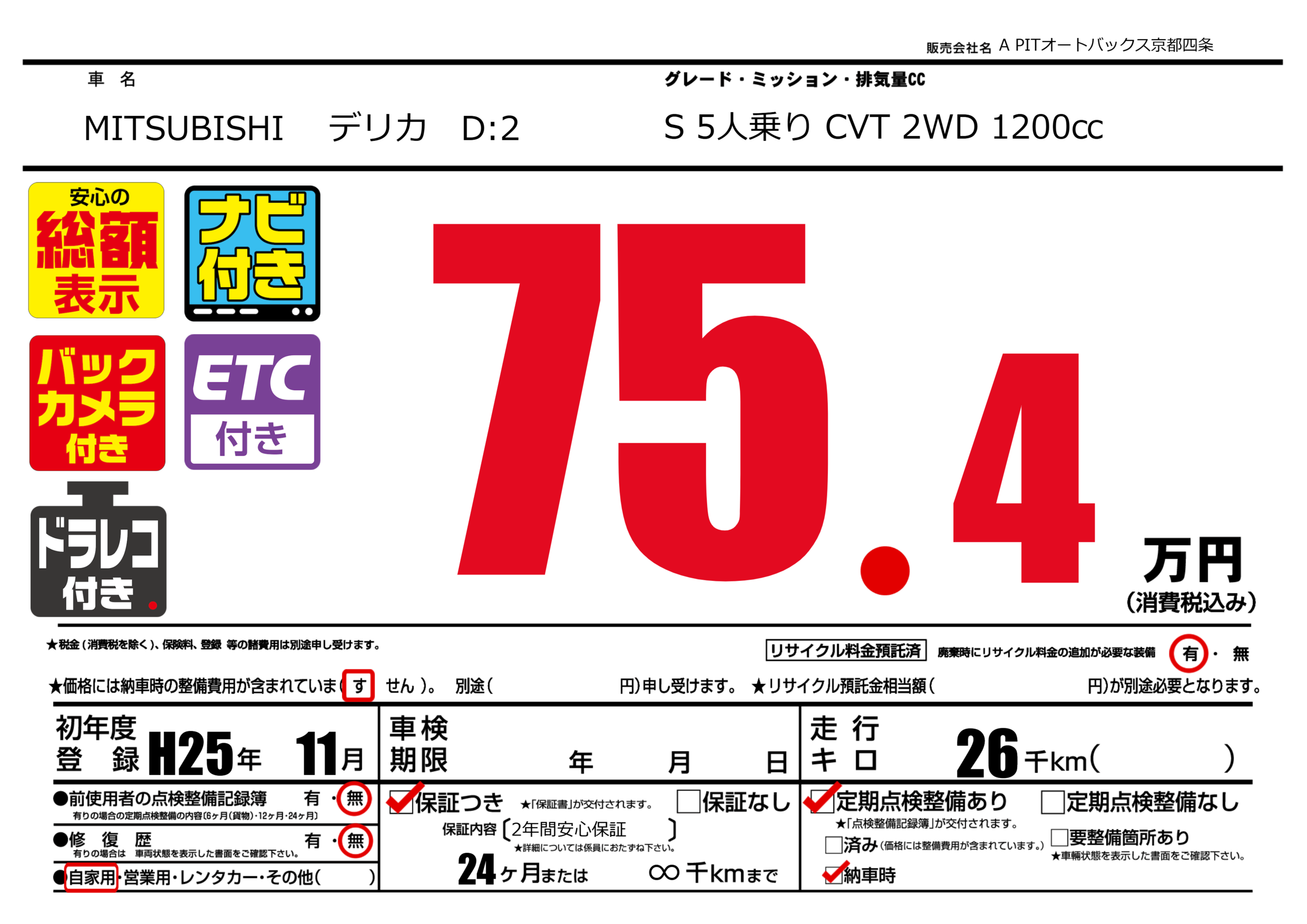 | 車名 | MITSUBISHI デリカ D:2 | グレード ミッション 排気量 |