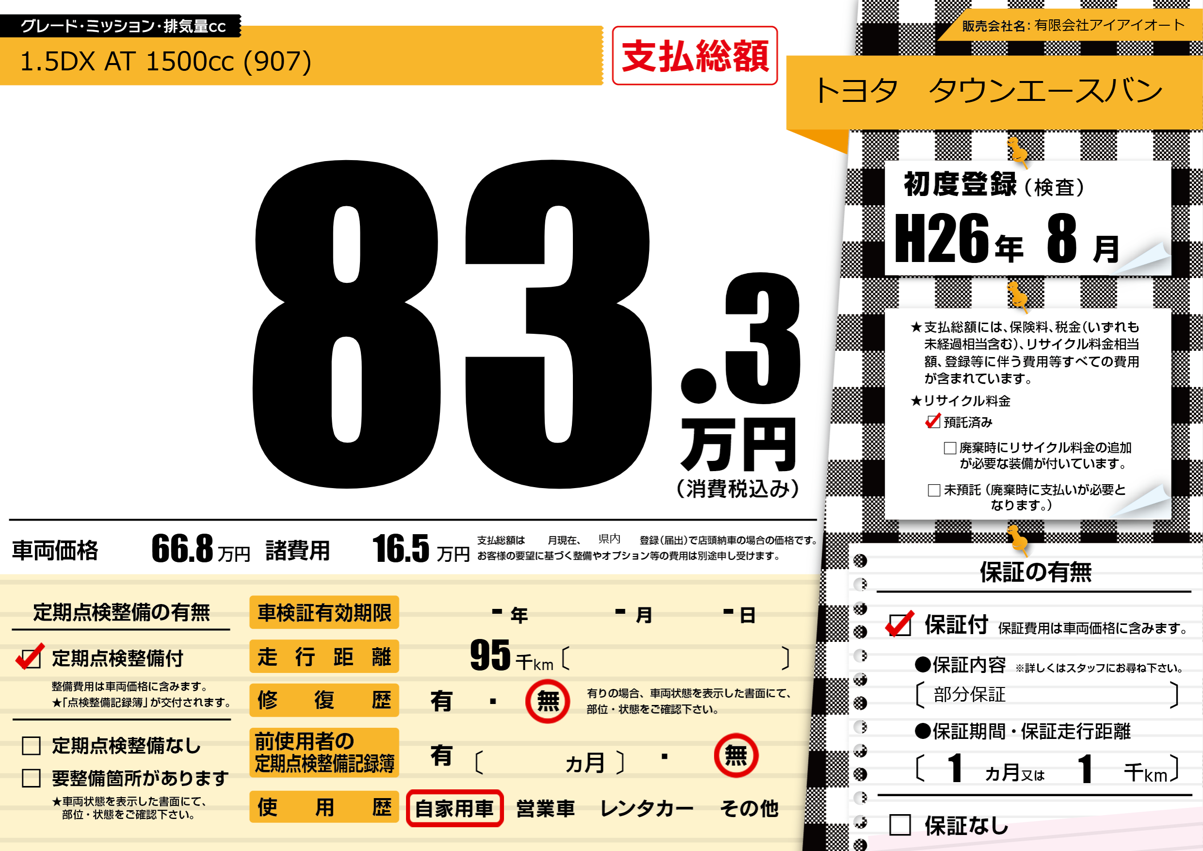 保証付き 保証内容(部分保証) 1ヶ月または(1)千kmまで |