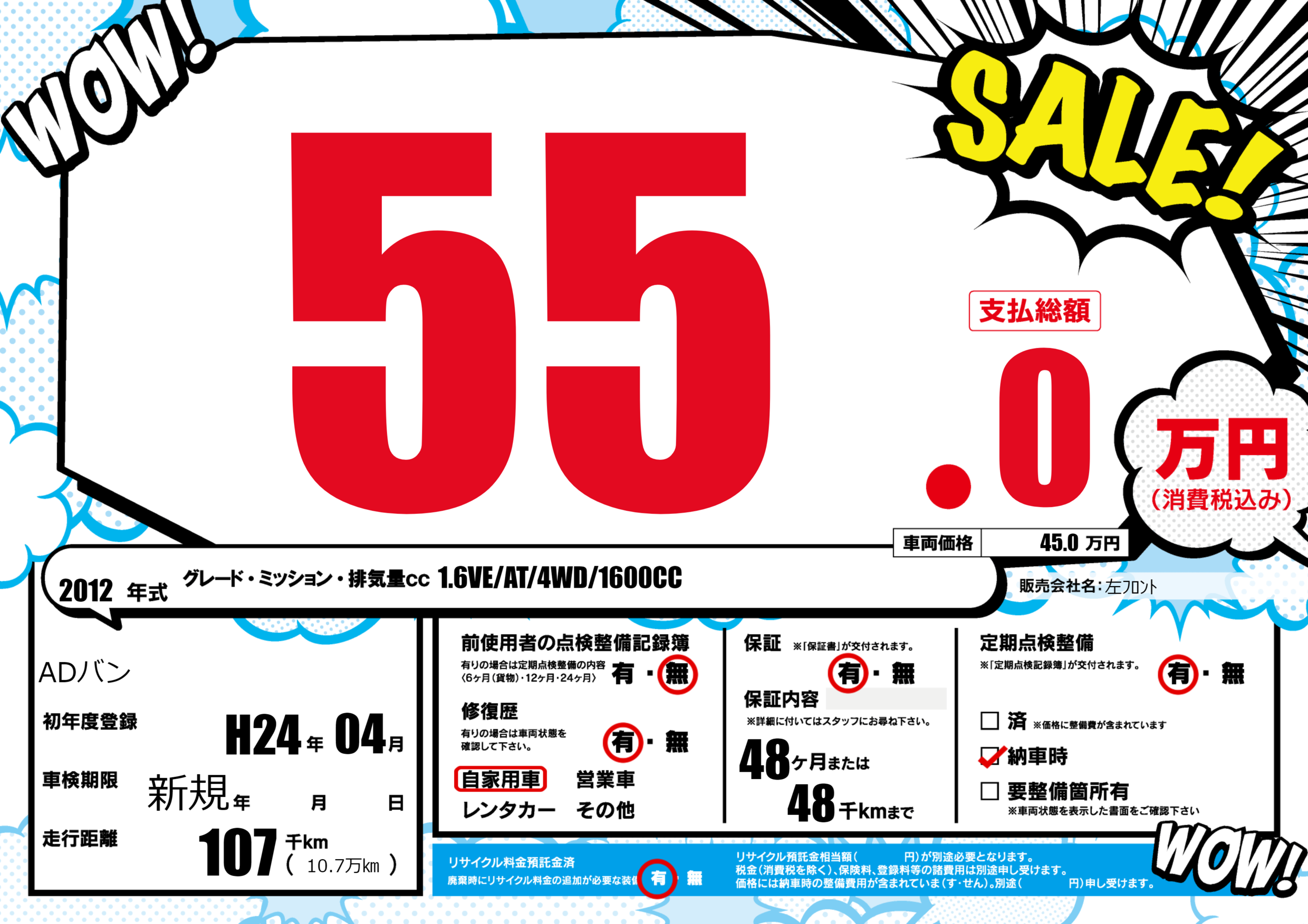 保証付き 保証内容(---) 48ヶ月または(48)千kmまで |