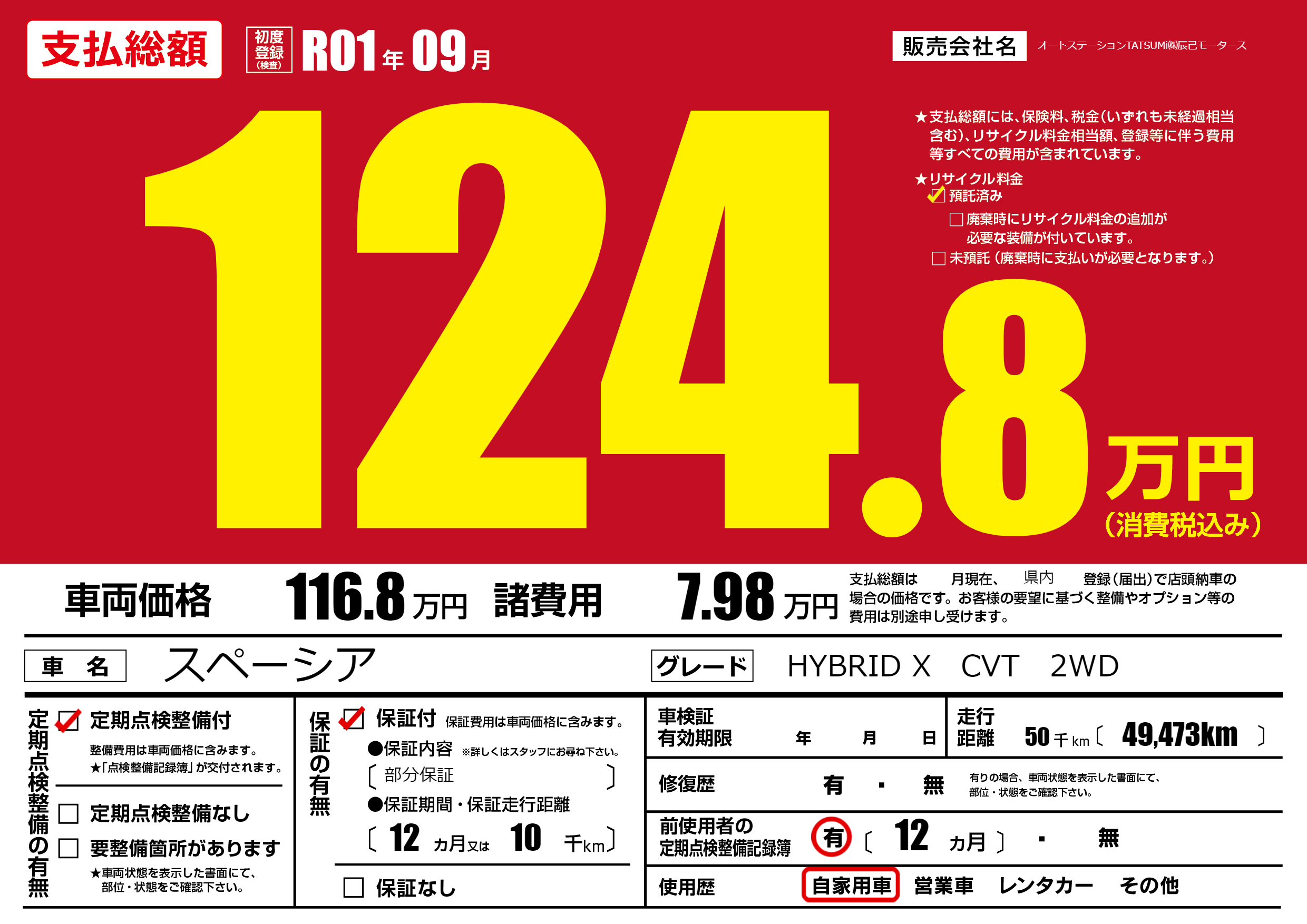 | 定期点検整備 | 定期点検整備あり | ||
