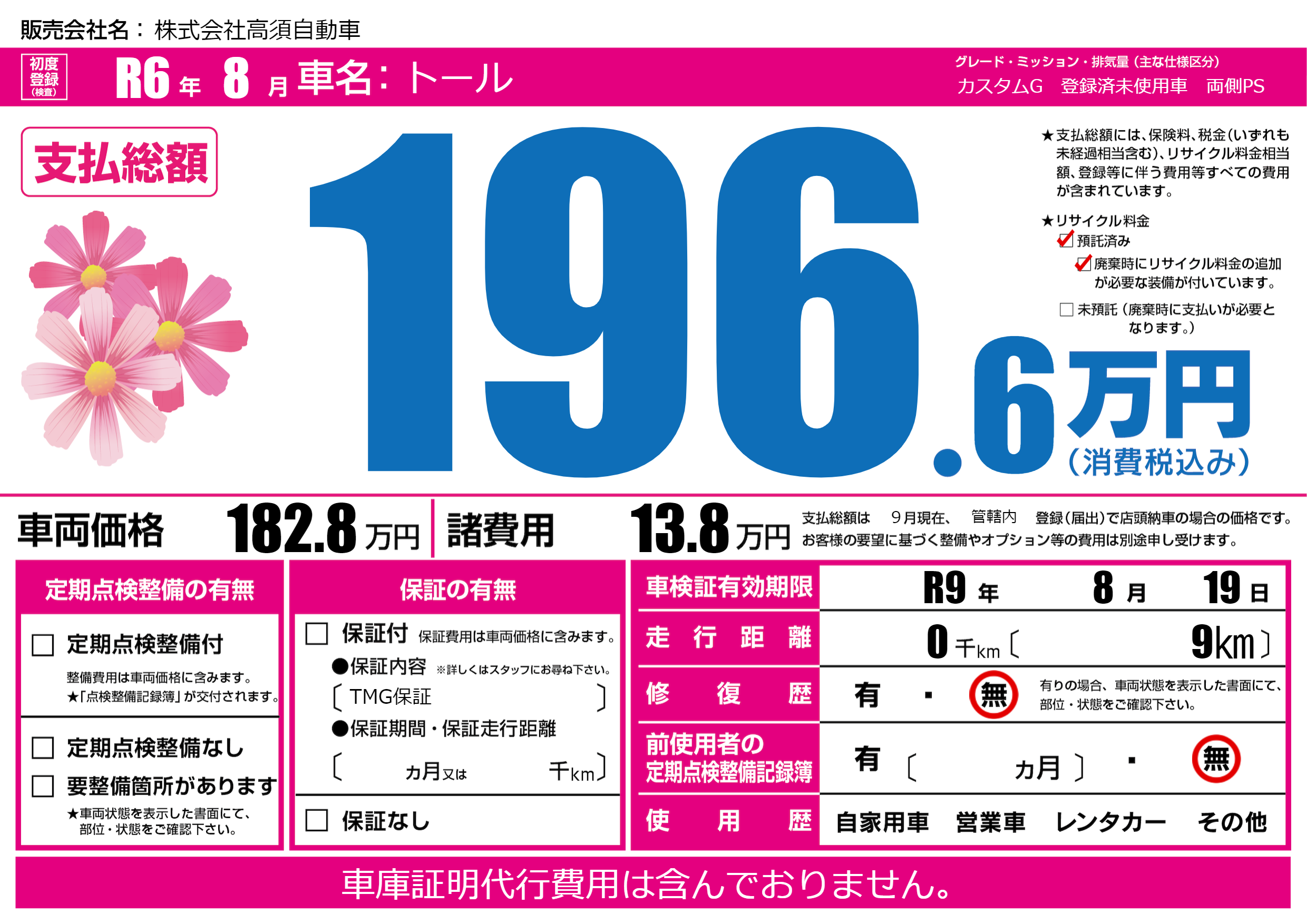 | 走行キロ | - | 初年度登録 | R6年8月 |