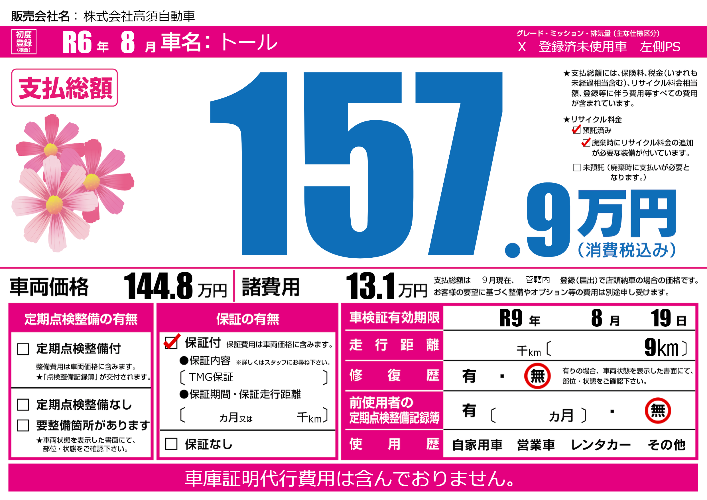 なし | 車検制限 | R9年8月19月 |