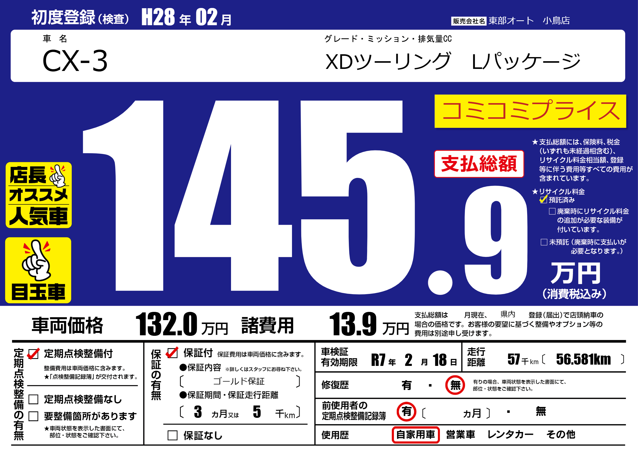 | 車名 | CX-3 | グレード ミッション 排気量 |