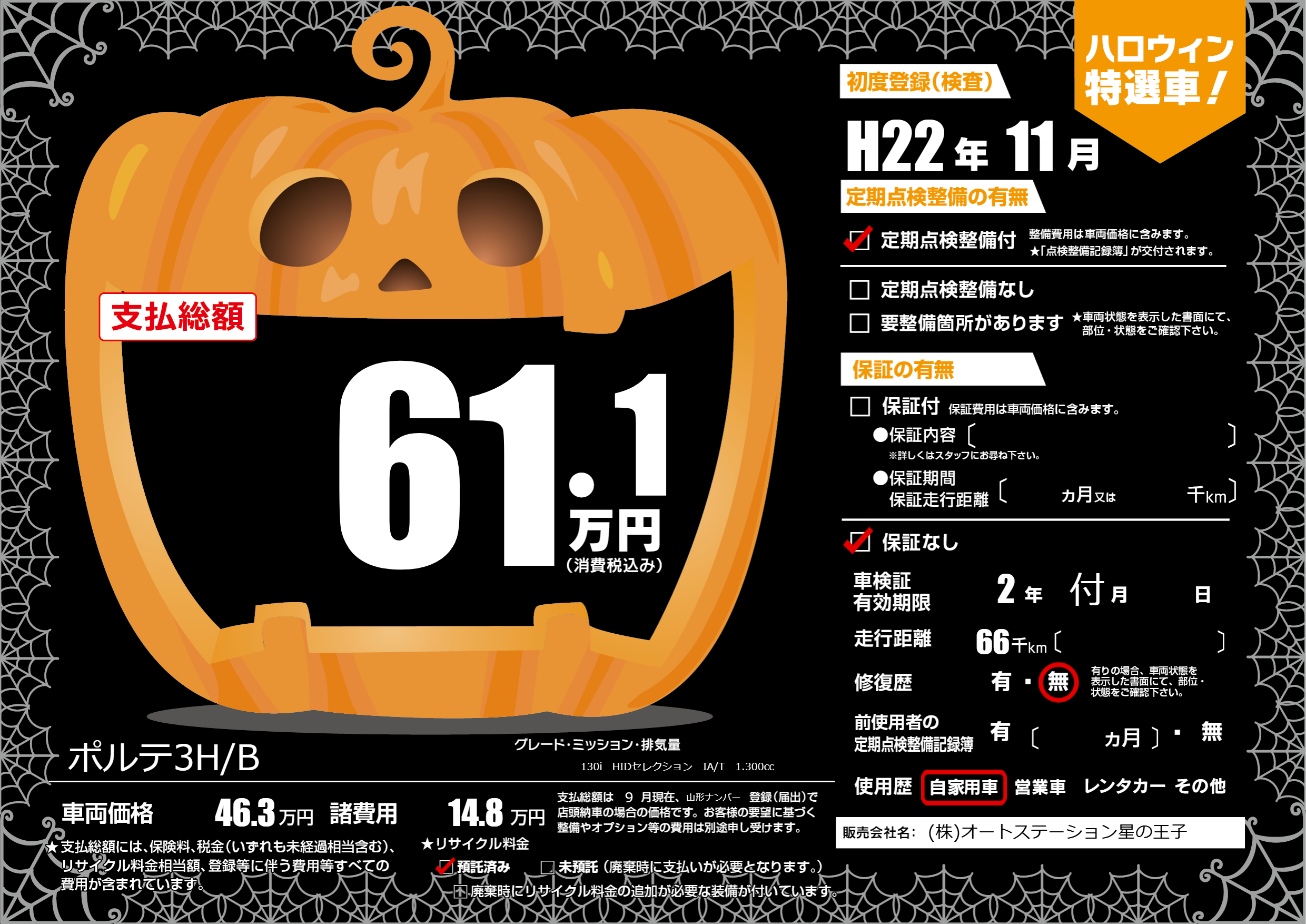 | 走行キロ | 6.6万km | 初年度登録 | H22年11月 |