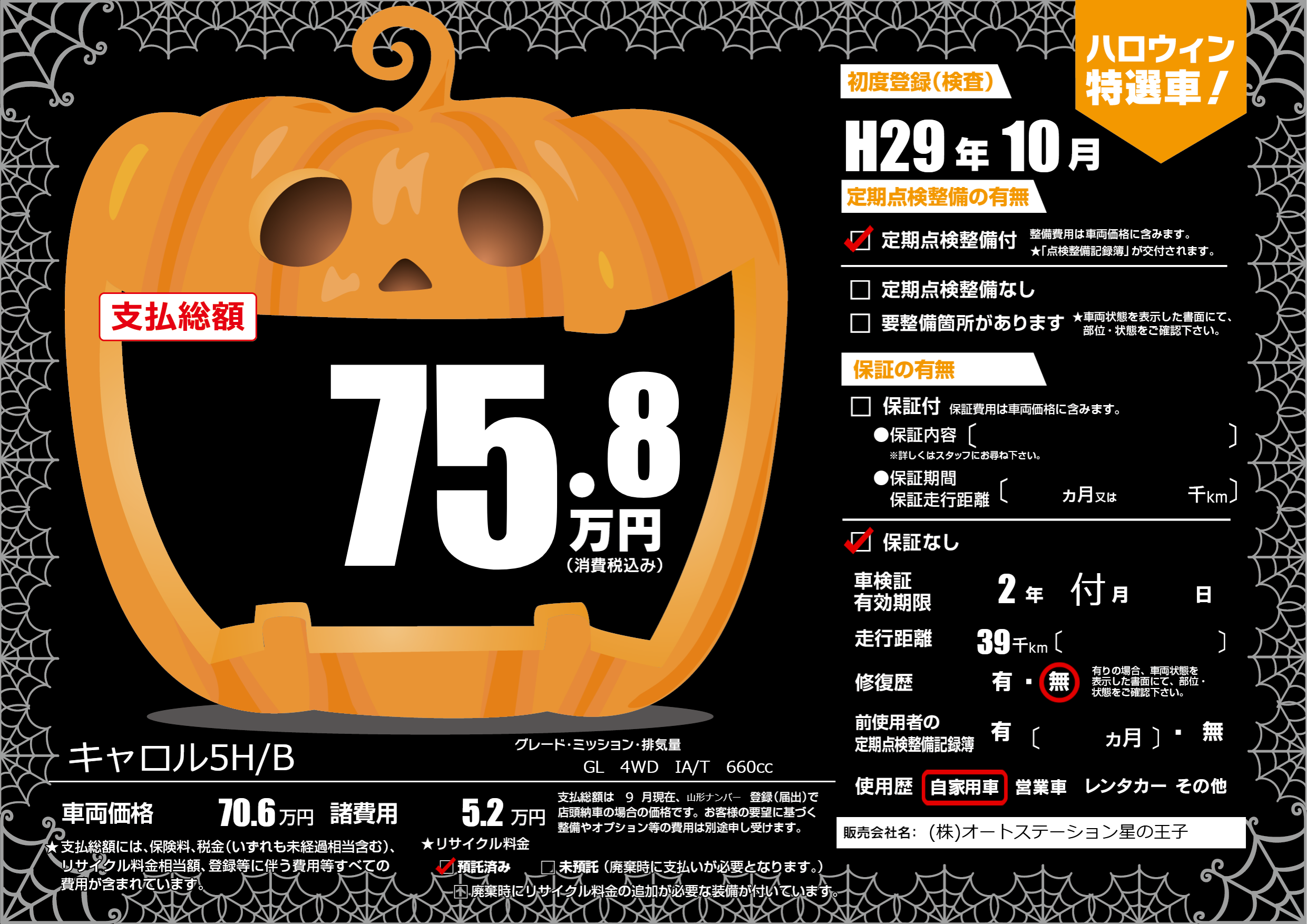 | 車名 | キャロル5H/B | グレード ミッション 排気量 |