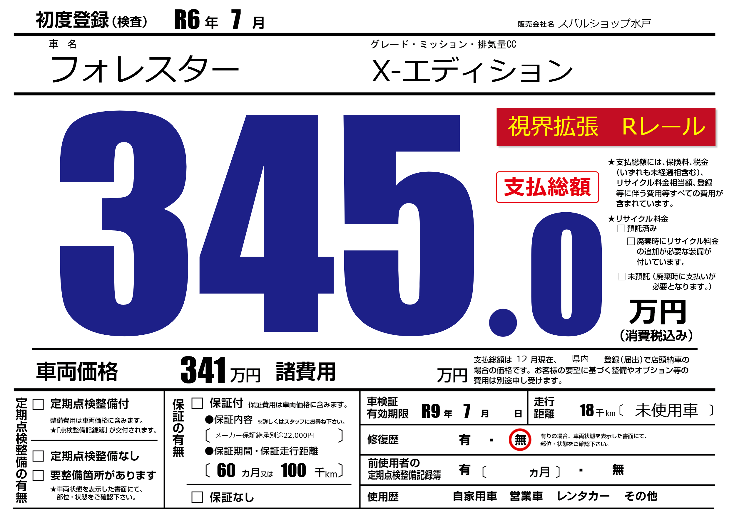 | 車検制限 | R9年 7月 - 日 | ||