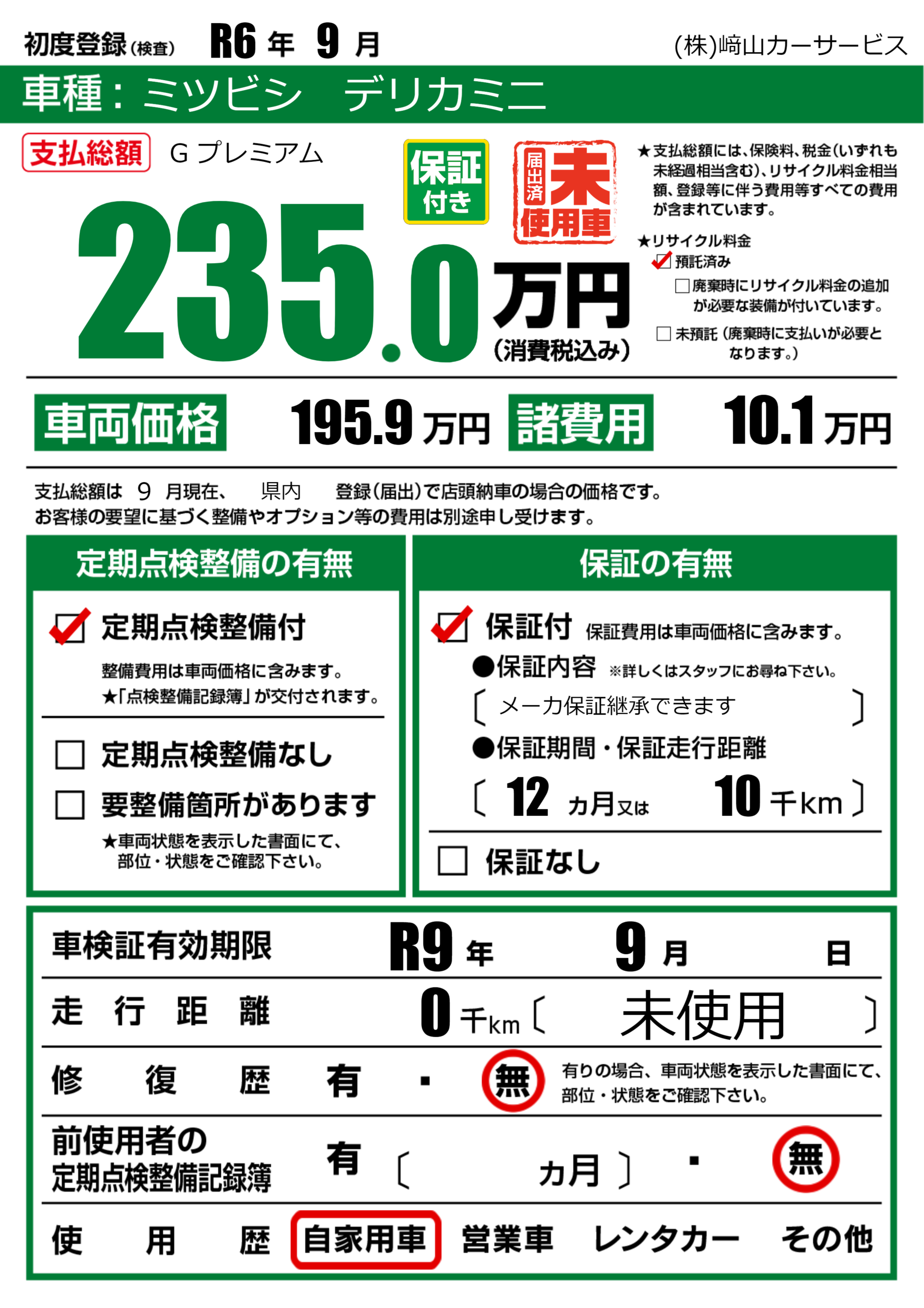 なし | 車検制限 | R9年9月---月 |