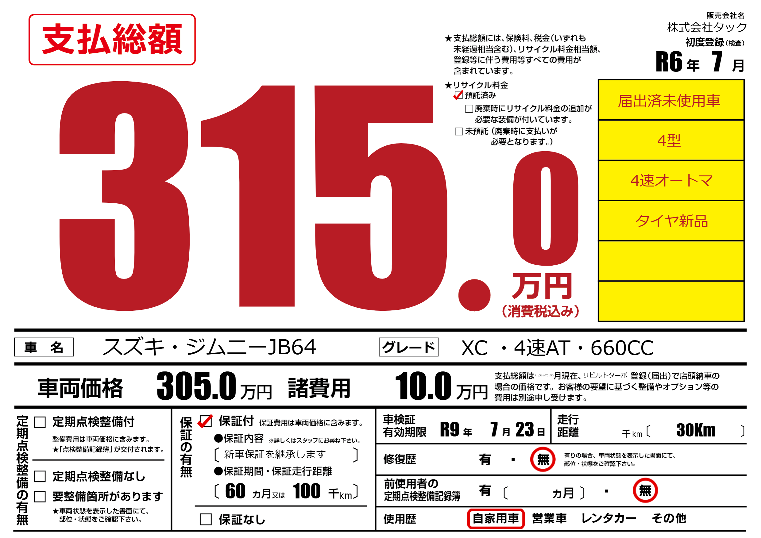 | 走行キロ | - | 初年度登録 | R6年7月 |