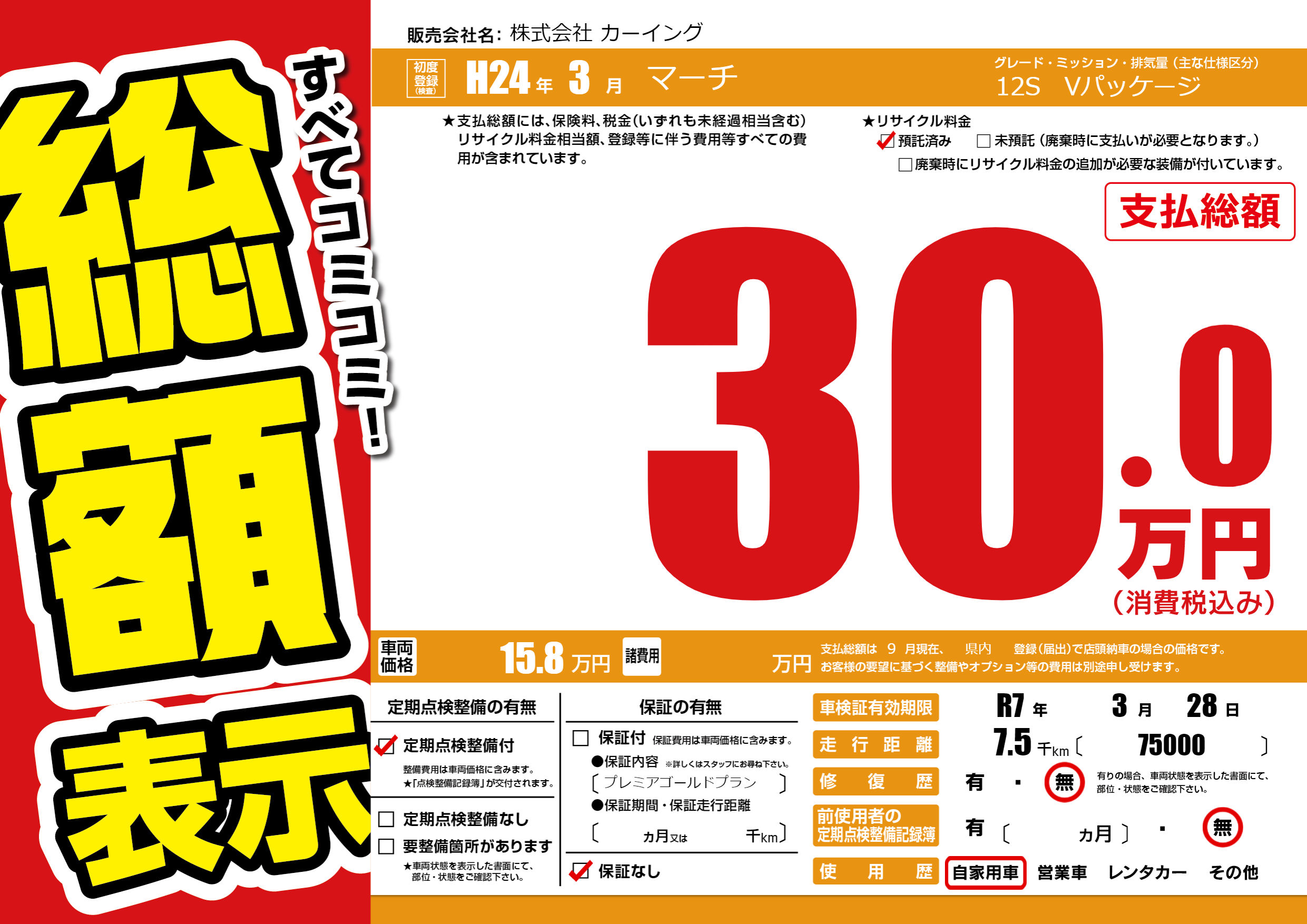 | 車名 | マーチ | グレード ミッション 排気量 |