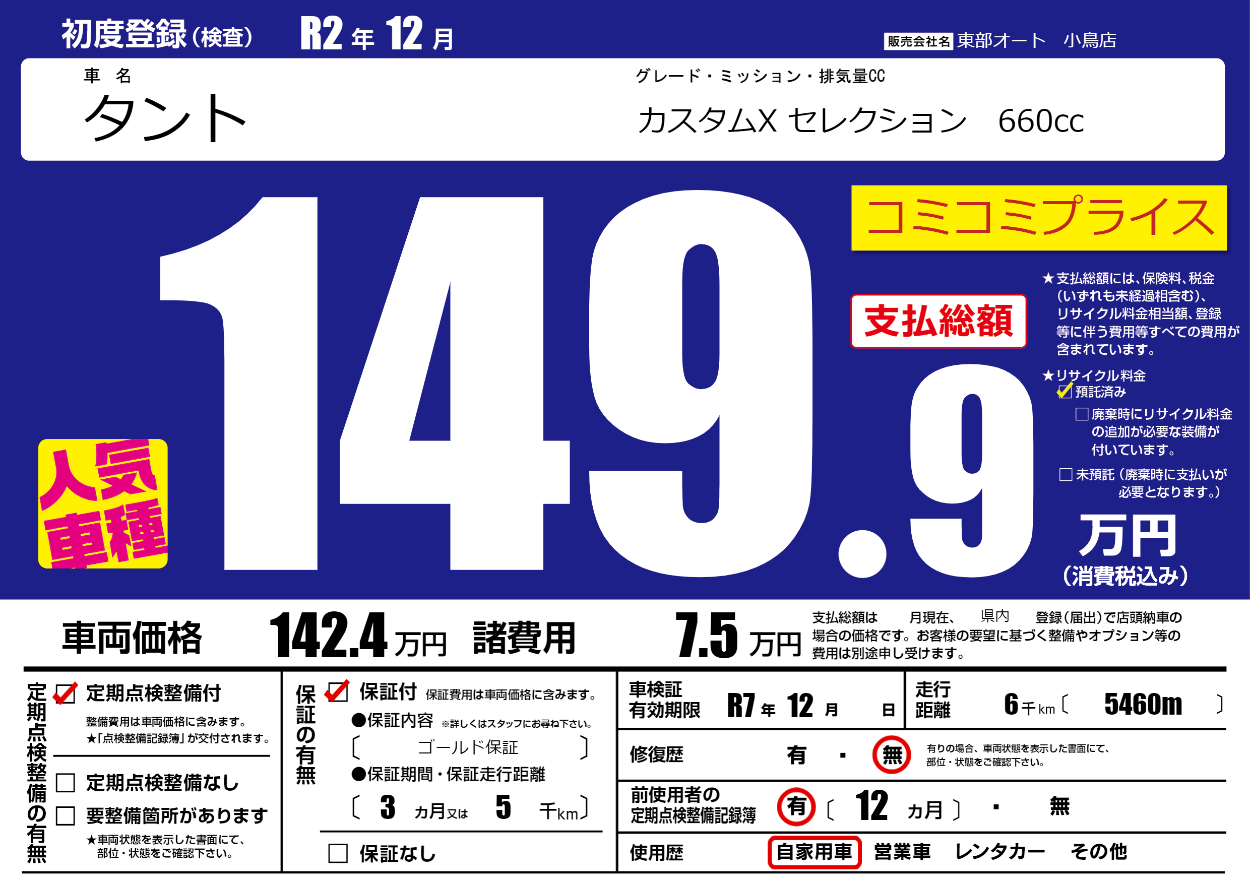 保証付き 保証内容( ゴールド保証) 3ヶ月または(5)千kmまで |