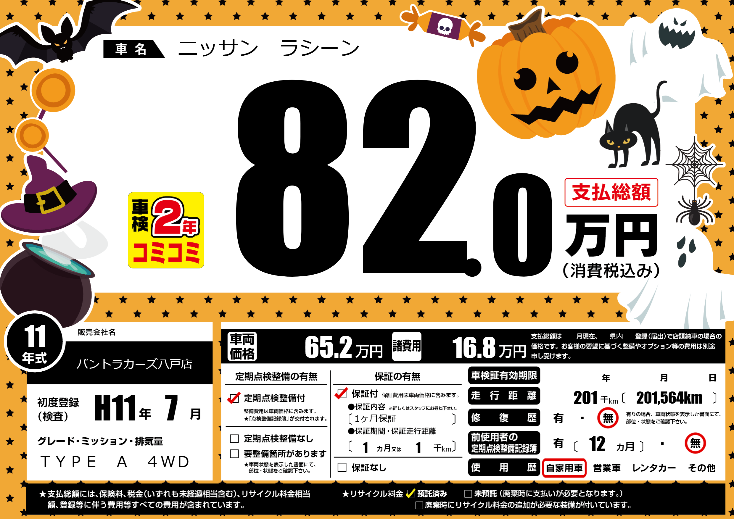 | 走行キロ | 20.1万km | 初年度登録 | H11年7月 |