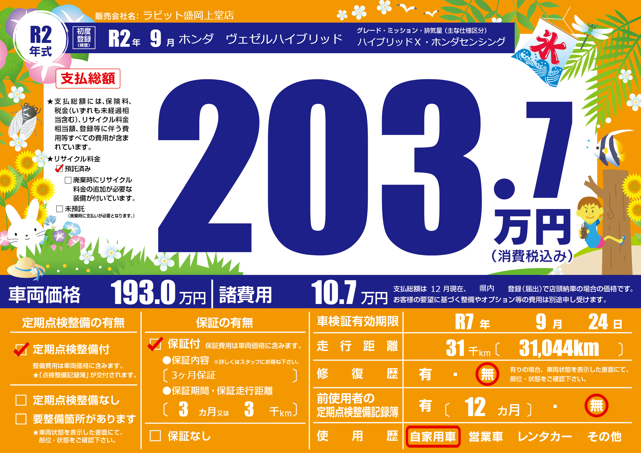 | 車検制限 | R7年 9月 24日 | ||