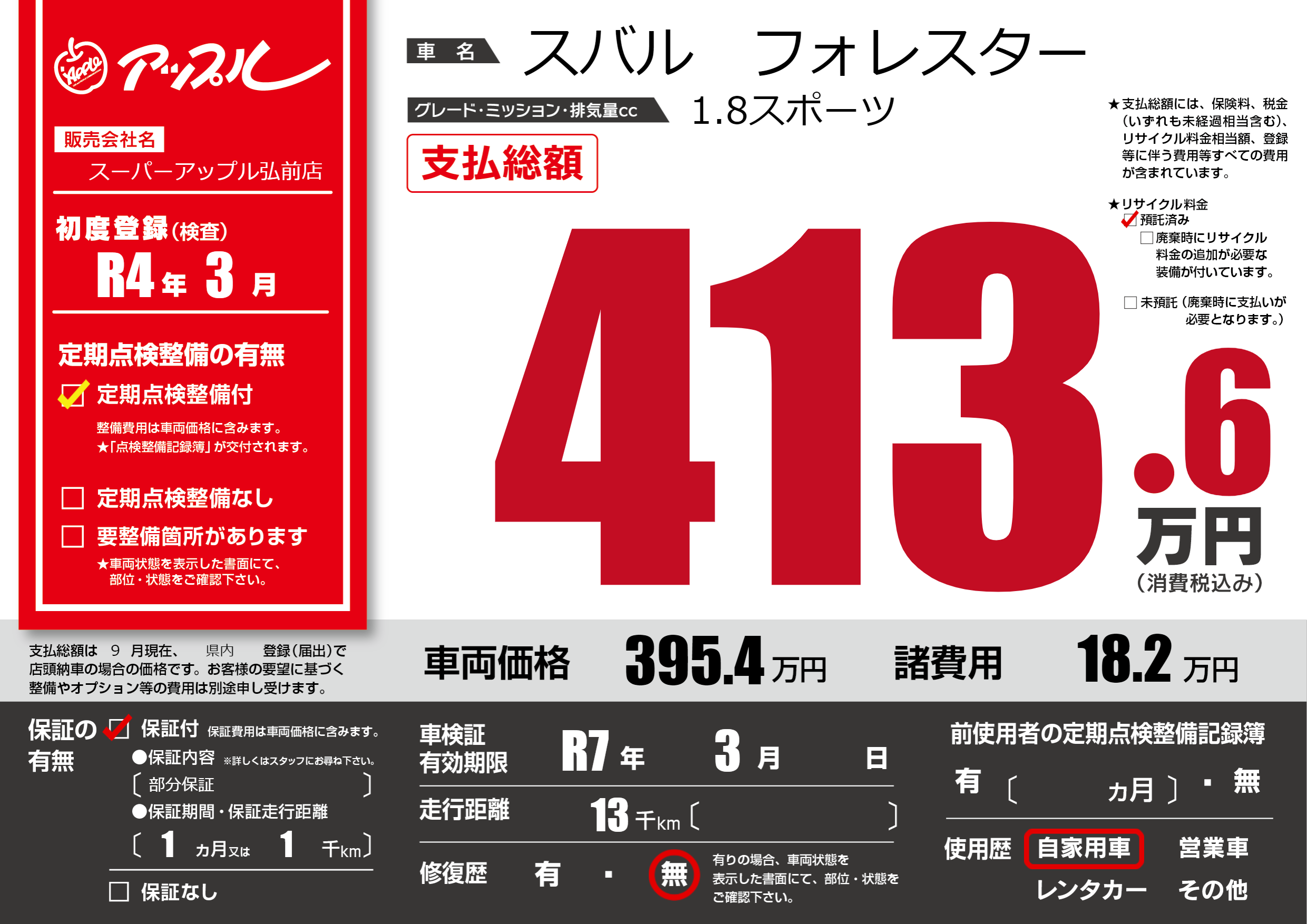 | 車名 | スバル フォレスター | グレード ミッション 排気量 |