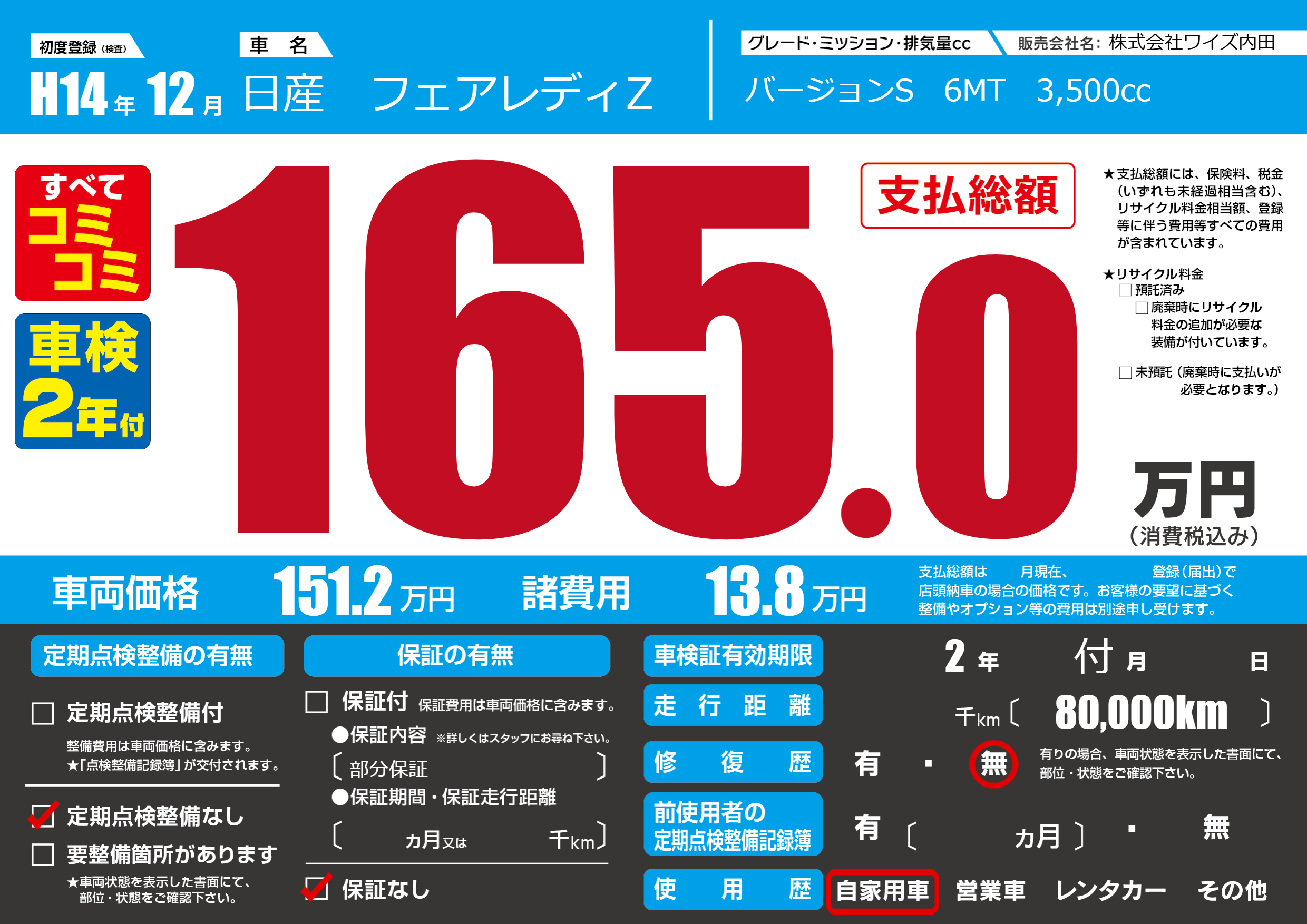| 走行キロ | - | 初年度登録 | H14年12月 |