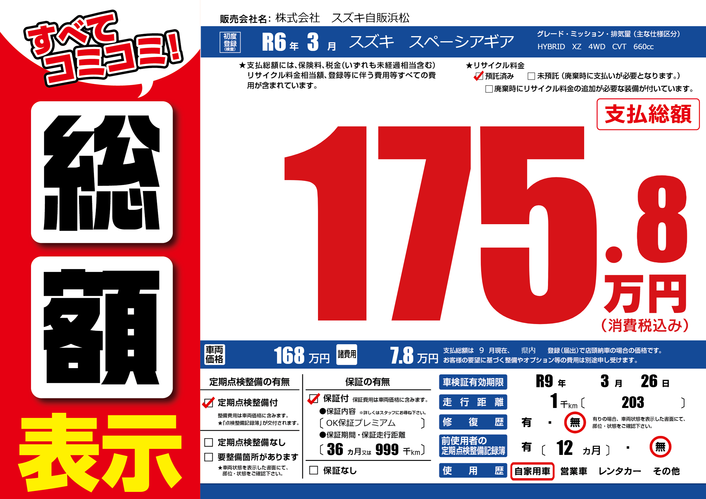 | 車名 | スズキ スペーシアギア | グレード ミッション 排気量 |