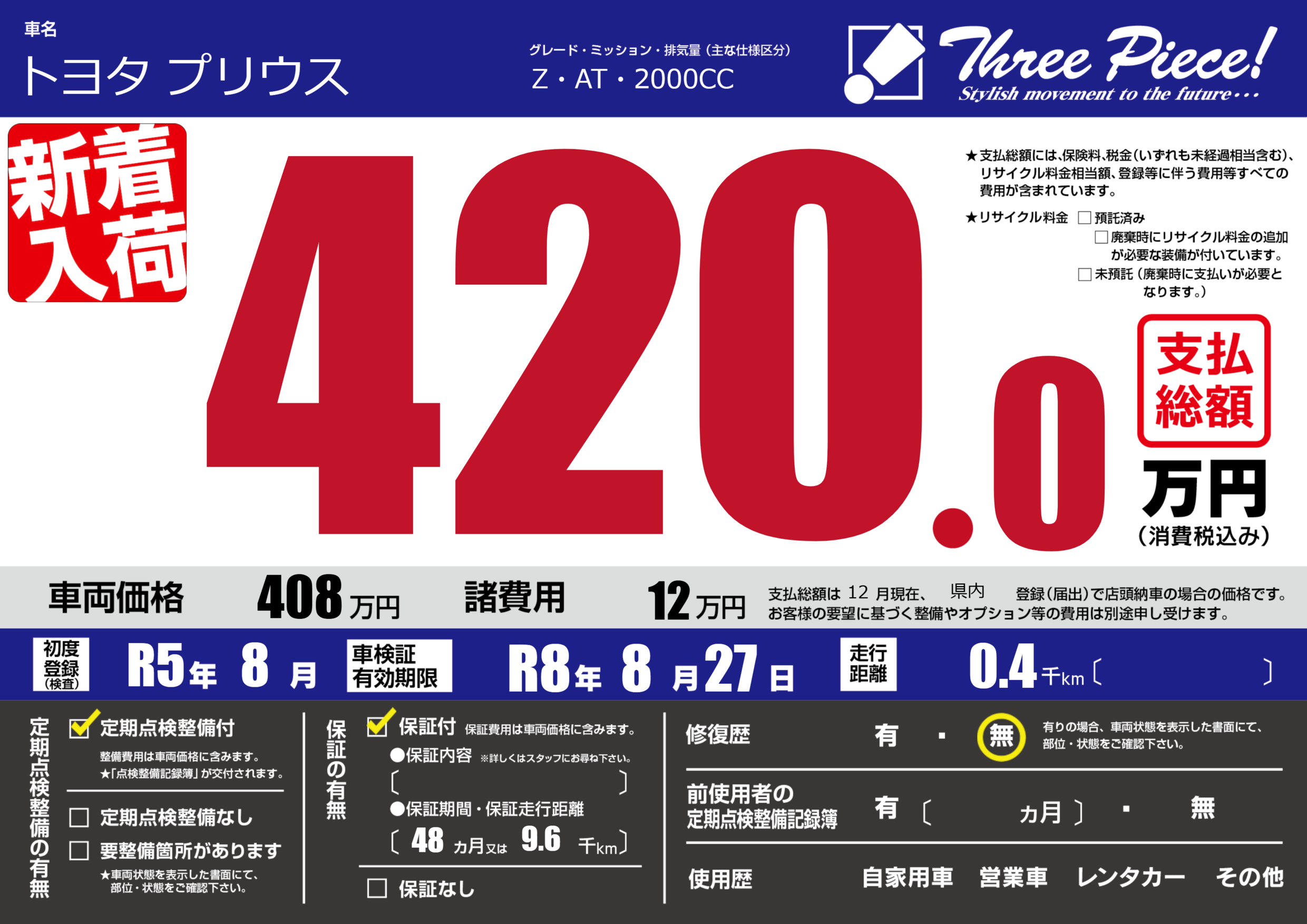 | 車名 | トヨタ プリウス | グレード ミッション 排気量 |