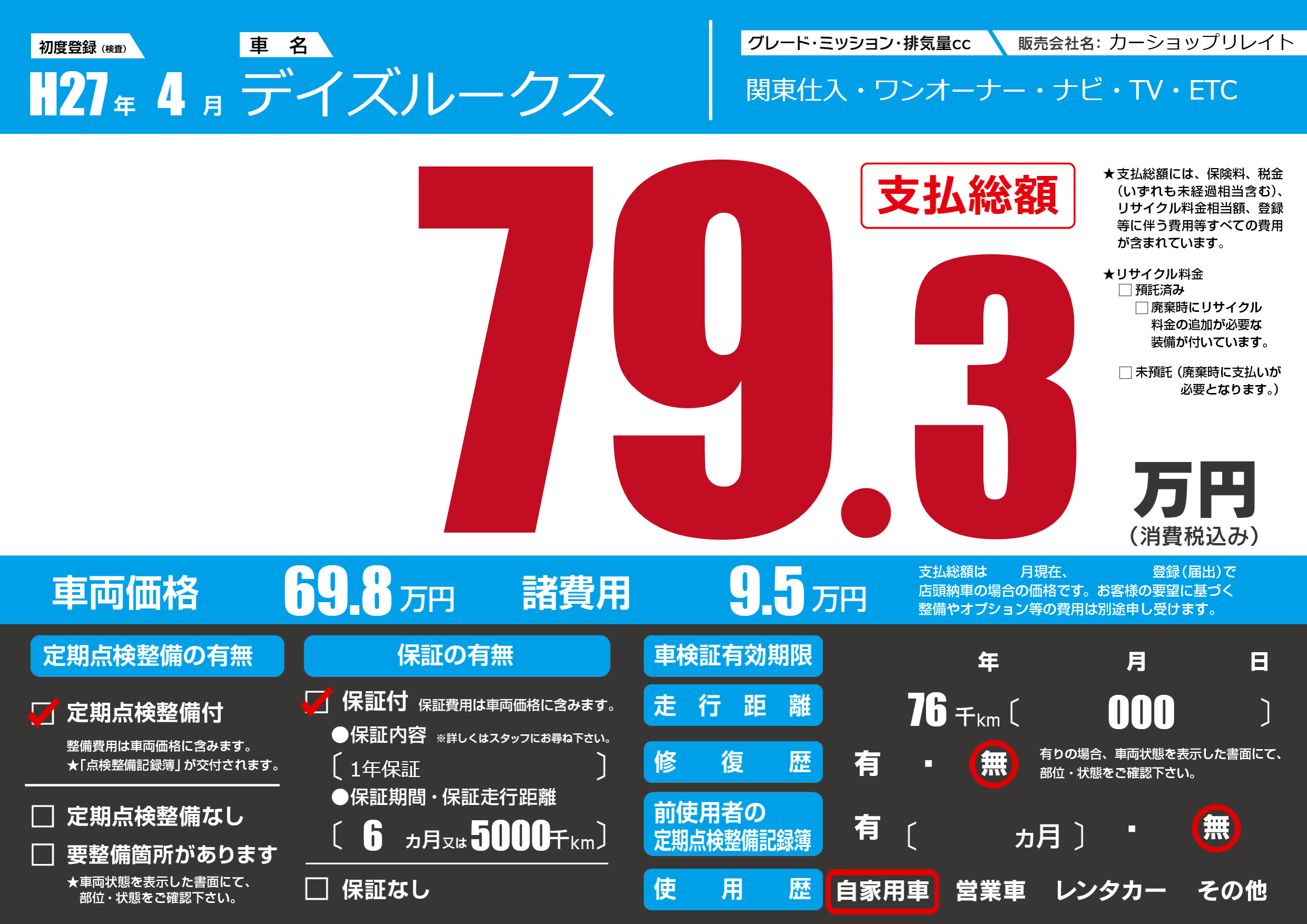 | 車検制限 | - 年 - 月 - 日 | ||
