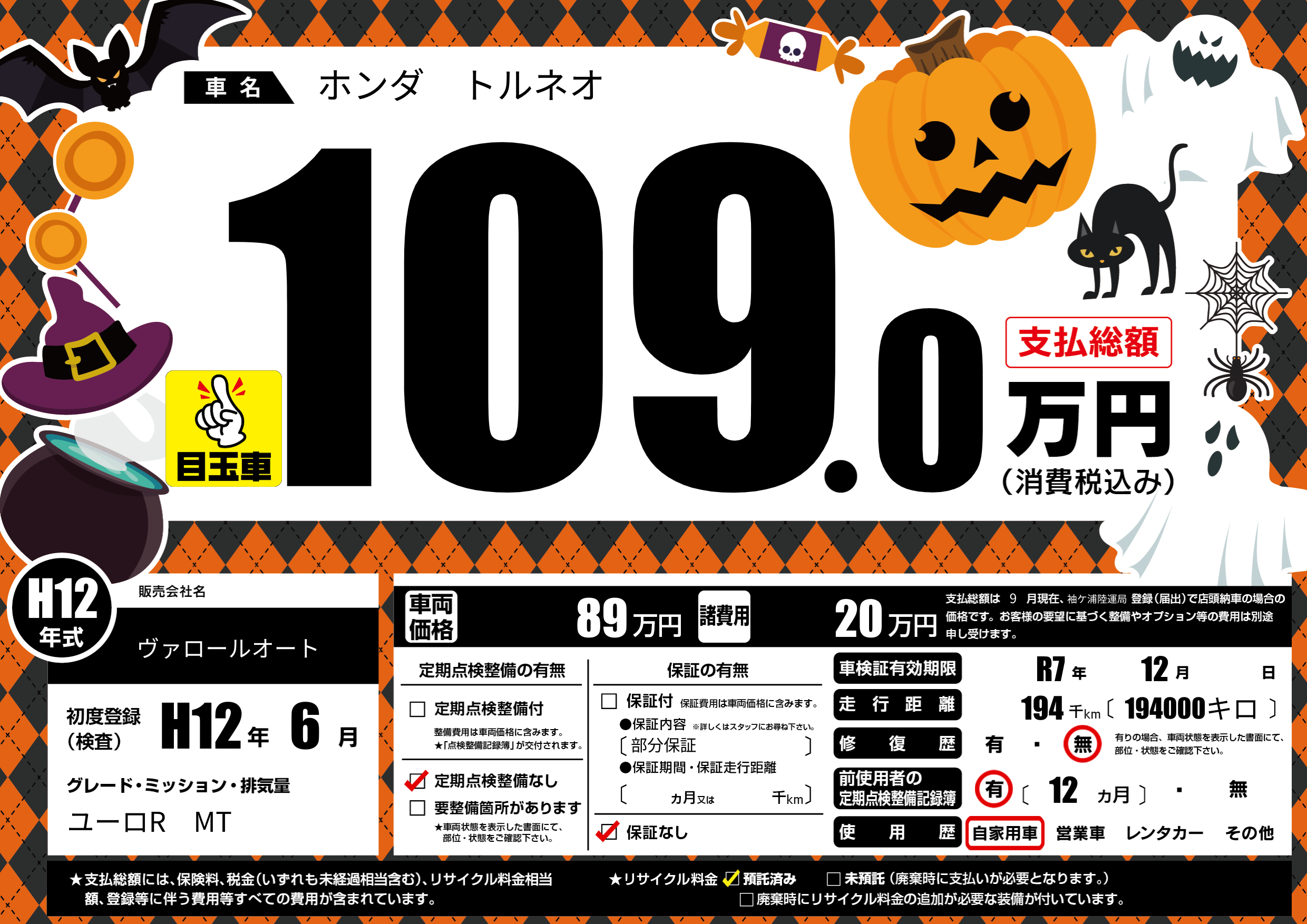 なし | 車検制限 | R7年12月---月 |