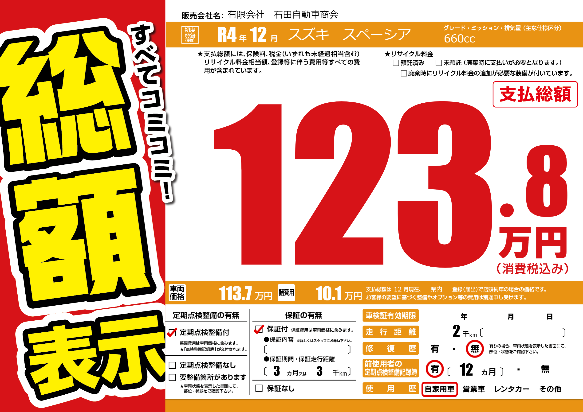 保証付き 保証内容(---) 3ヶ月または(3)千kmまで |
