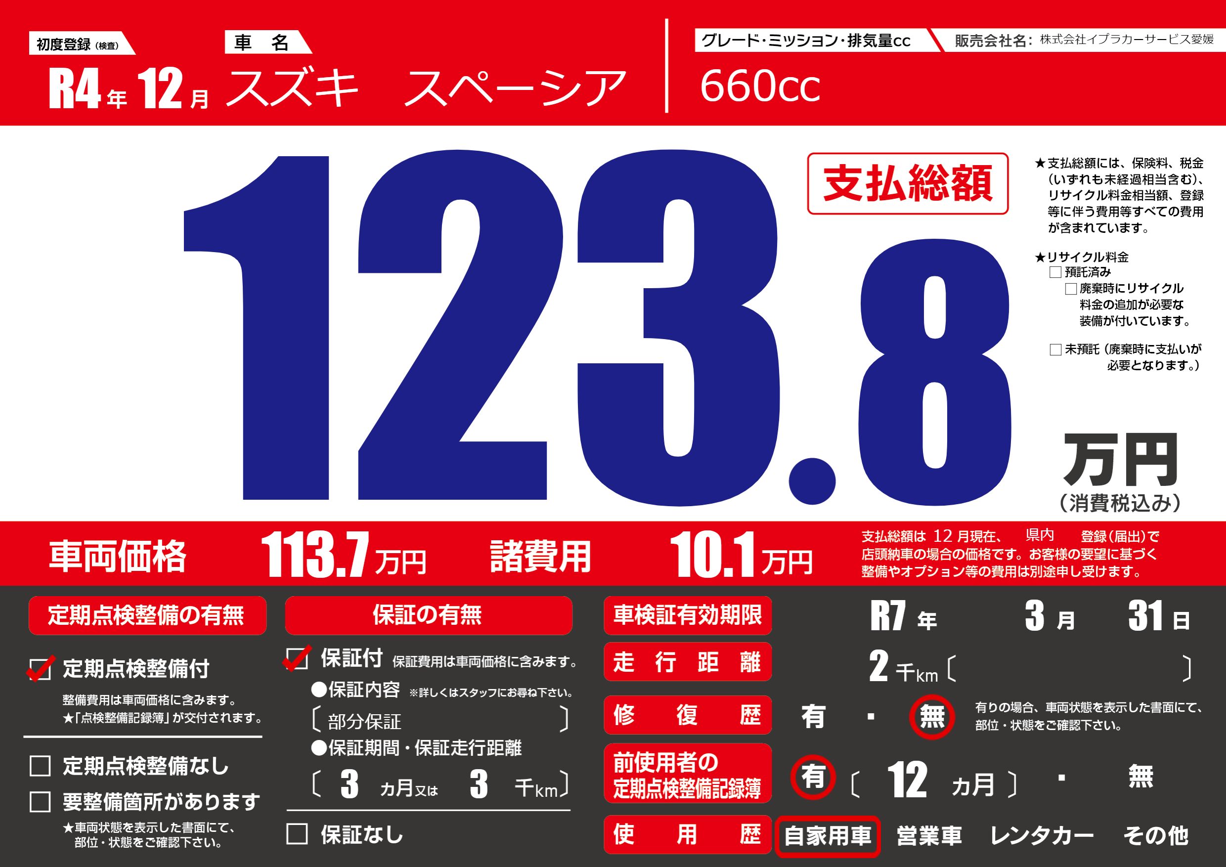 | 走行キロ | 0.2万km | 初年度登録 | R4年12月 |