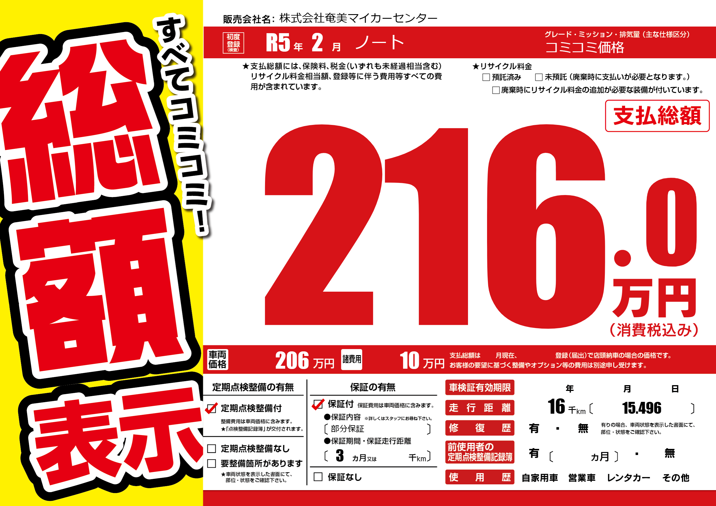 | 走行キロ | 1.6万km | 初年度登録 | R5年2月 |