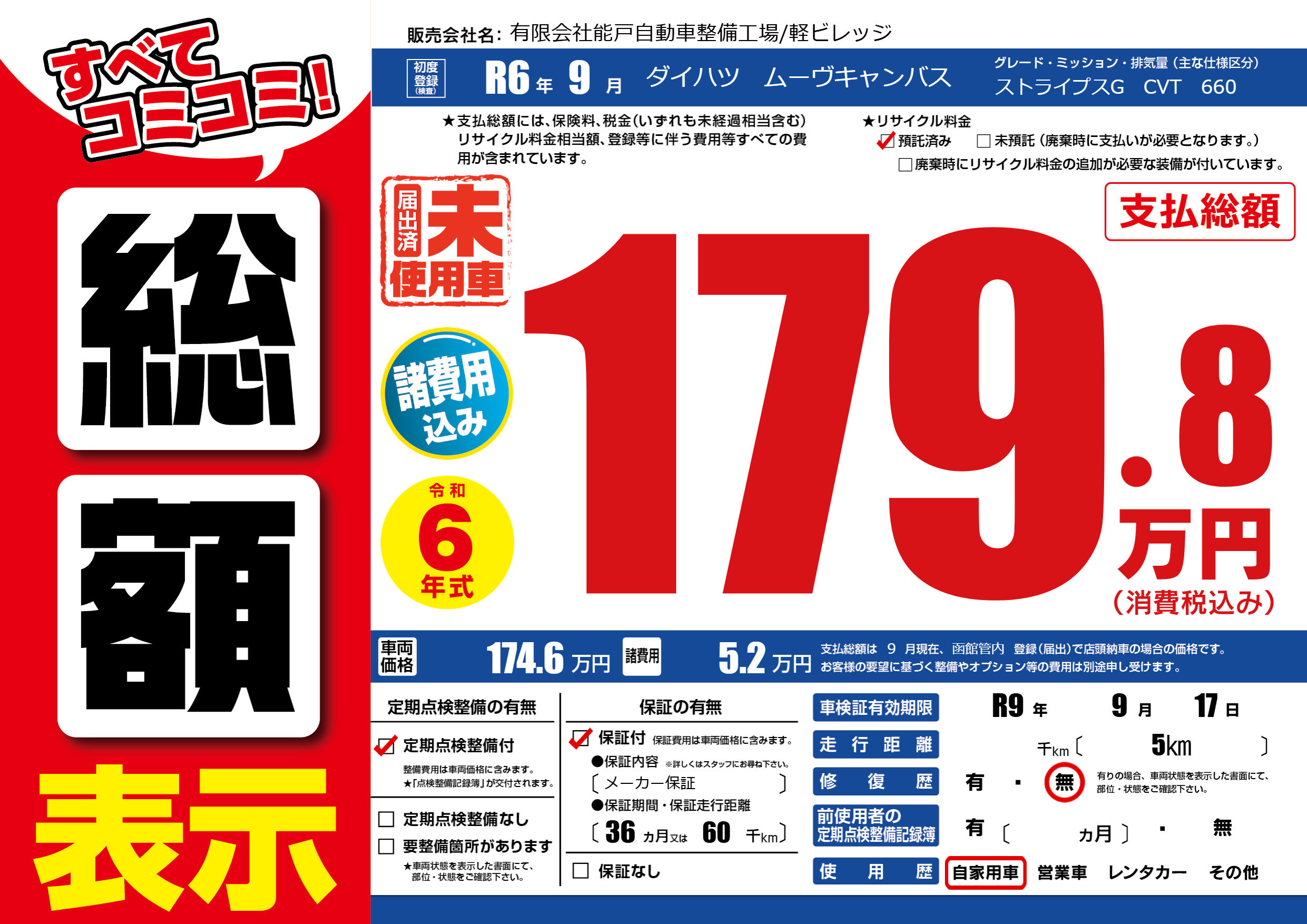 | 走行キロ | - | 初年度登録 | R6年9月 |