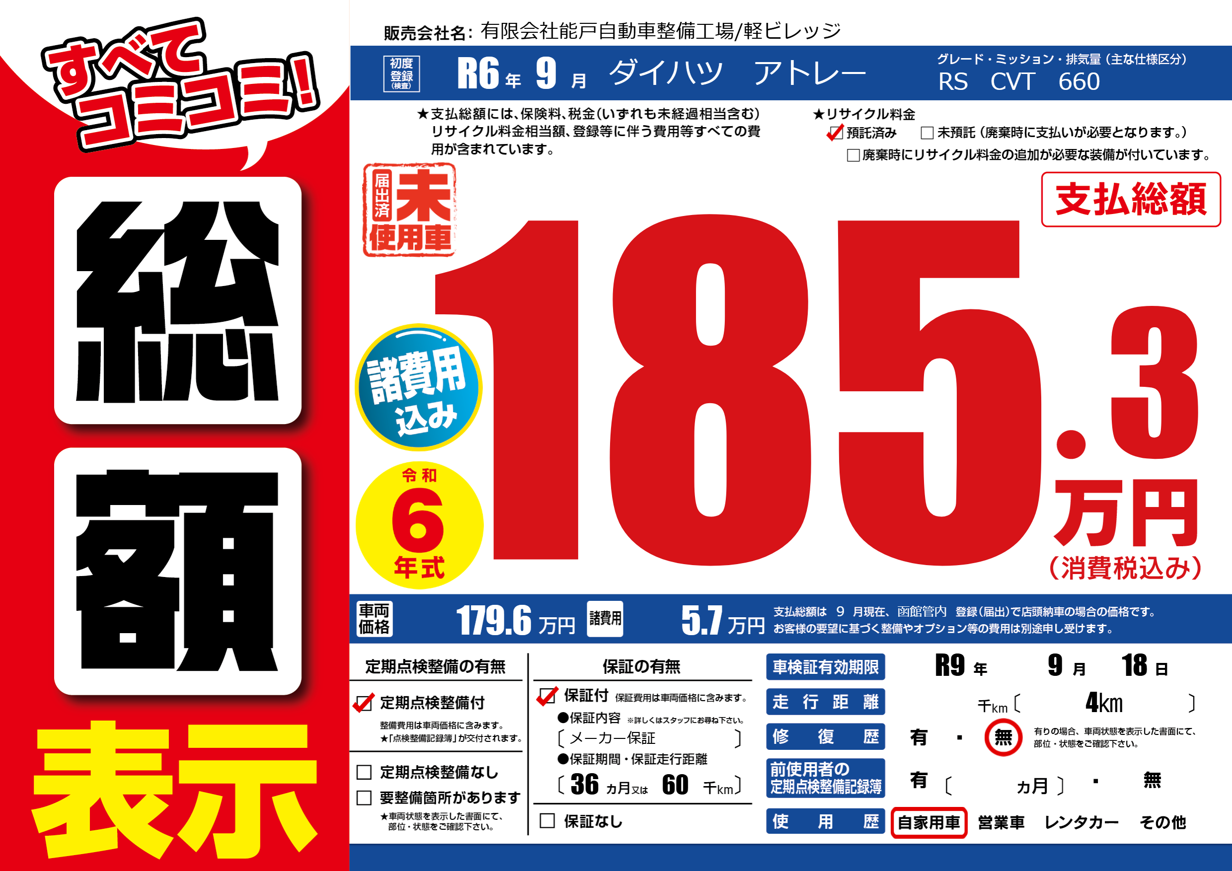 | 走行キロ | - | 初年度登録 | R6年9月 |
