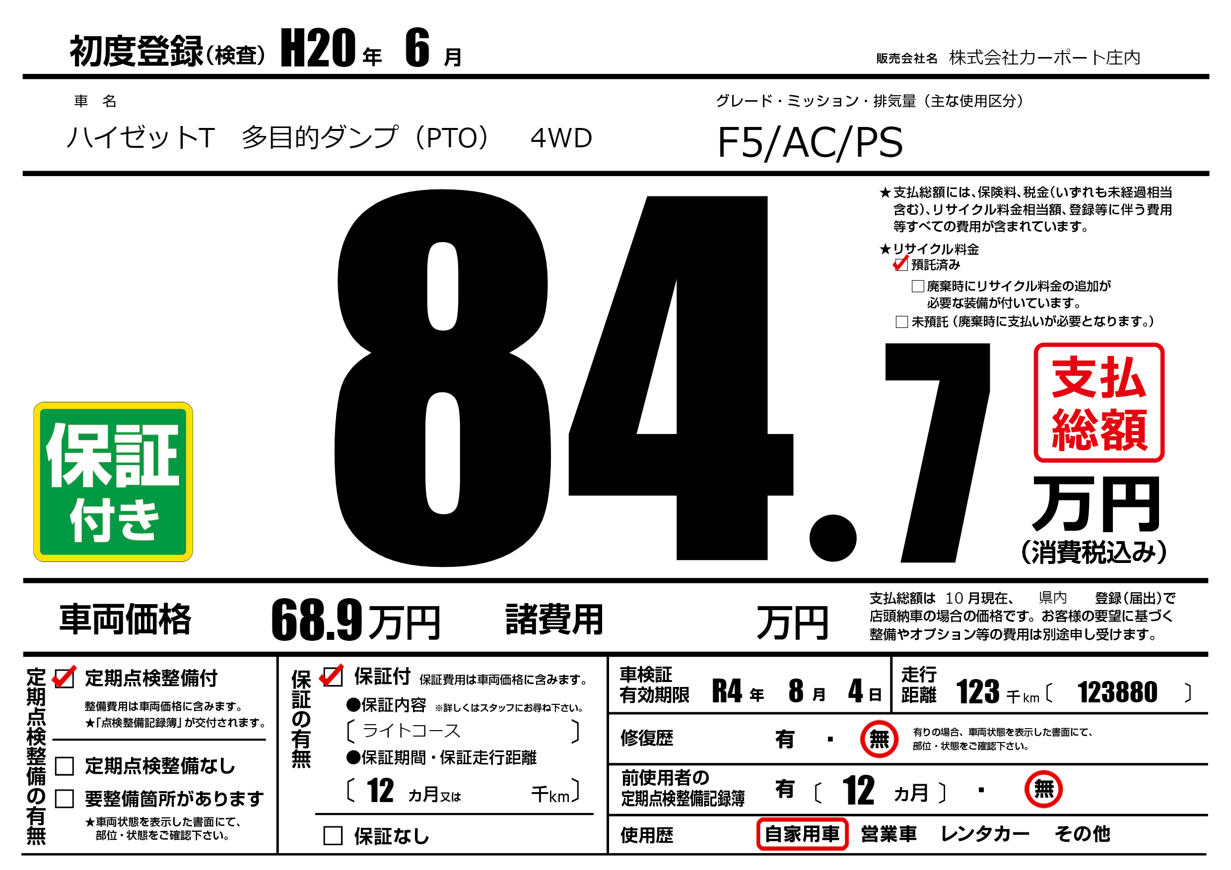 なし | 車検制限 | R4年8月4月 |