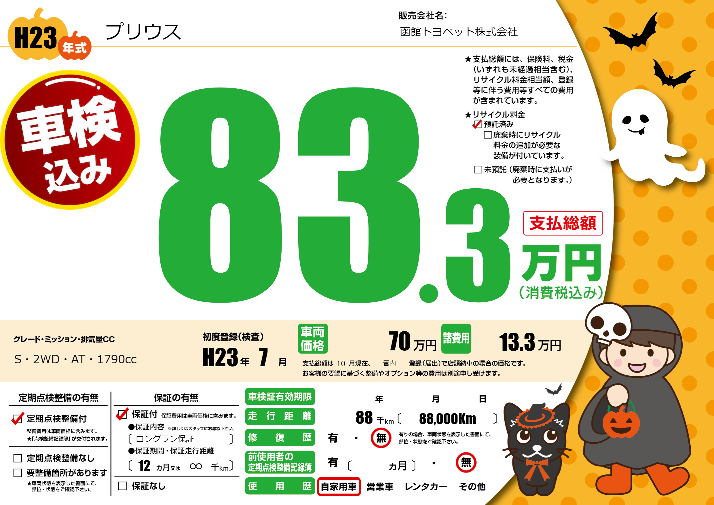 | 走行キロ | 8.8万km | 初年度登録 | H23年7月 |