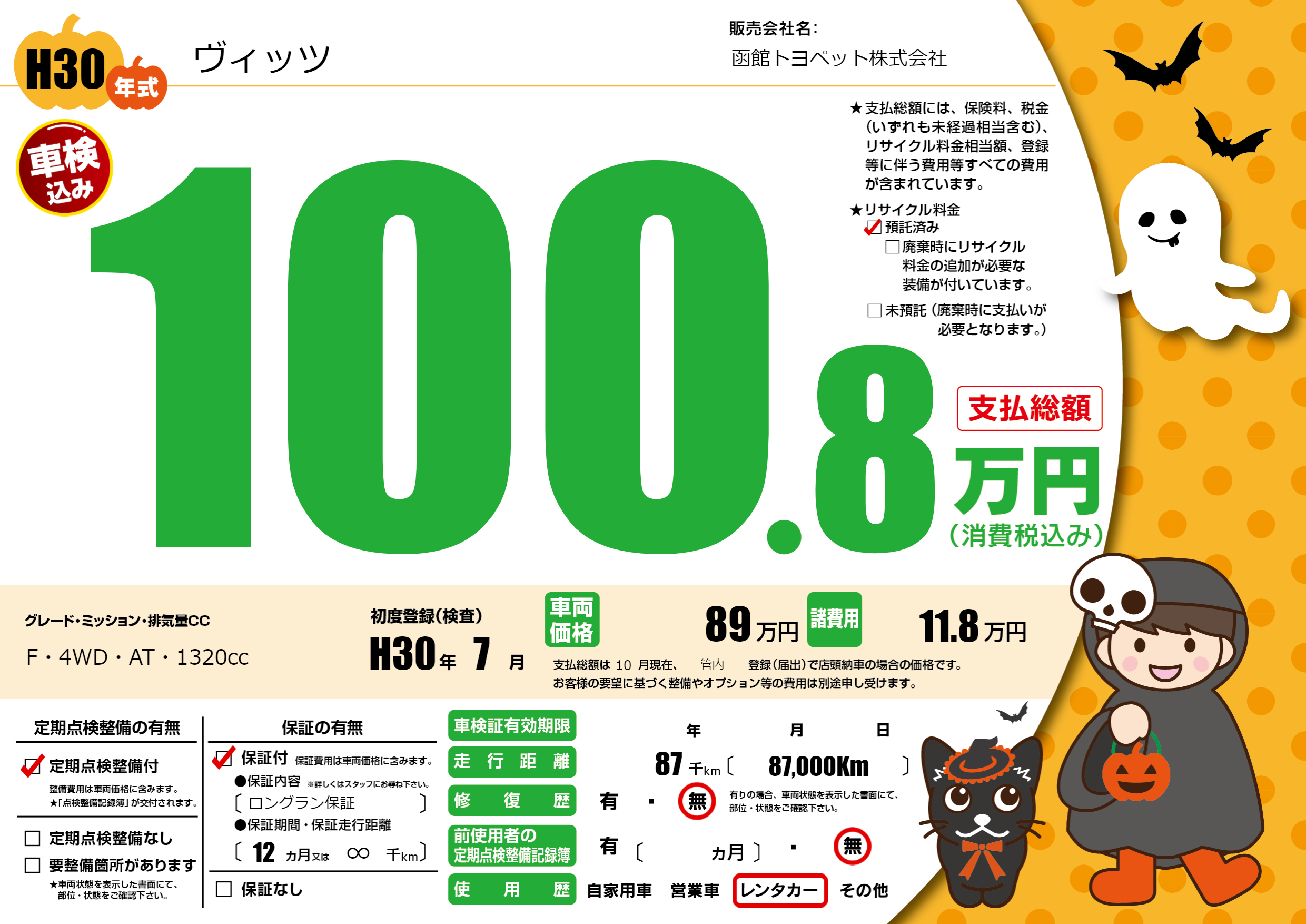 | 走行キロ | 8.7万km | ||