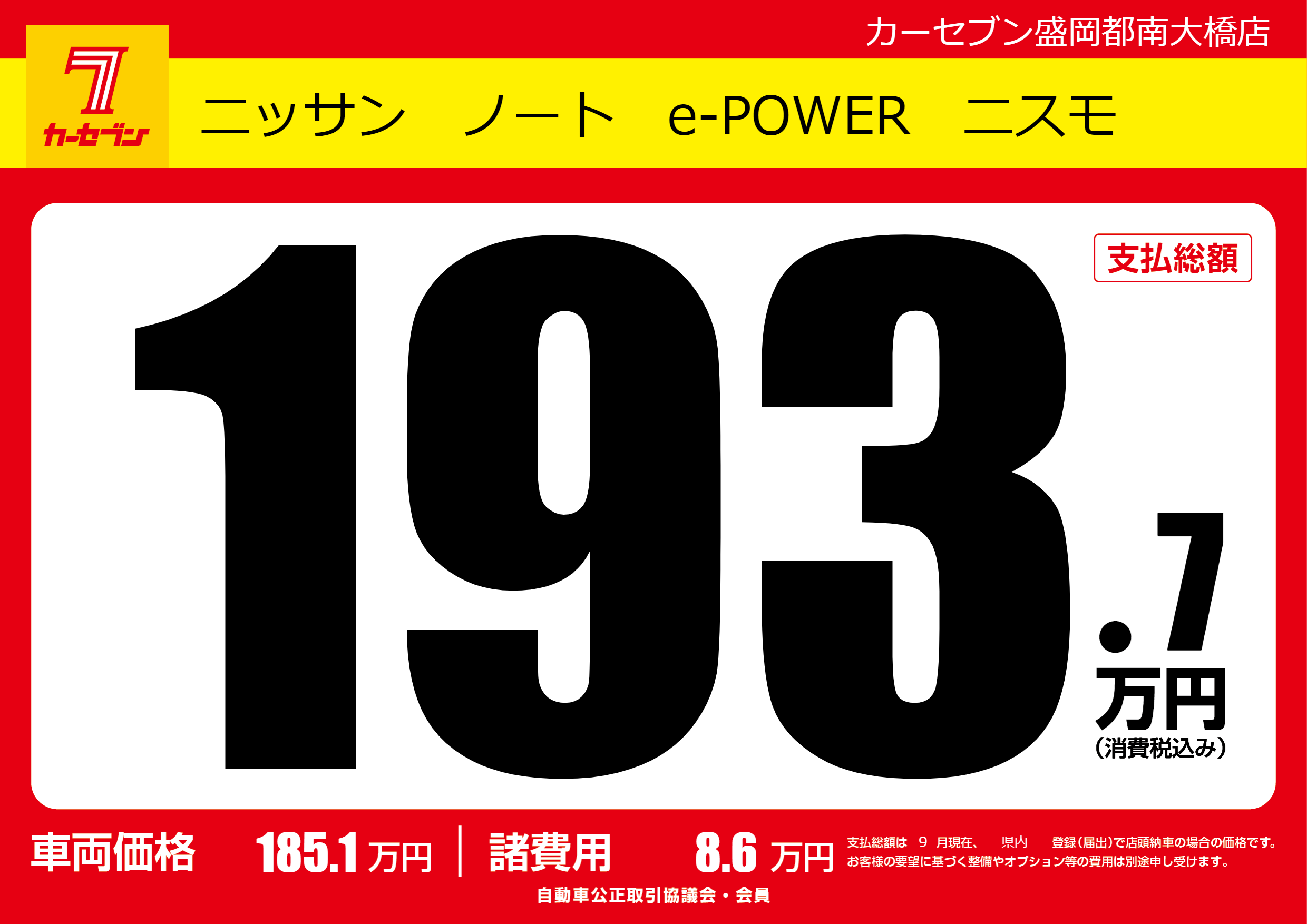 | 車名 | ニッサン ノート e-POWER ニスモ | グレード ミッション 排気量 |