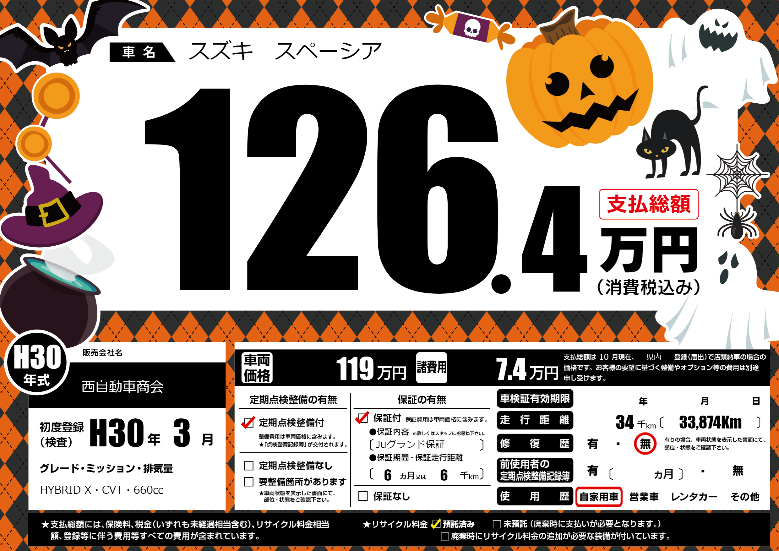 | 走行キロ | 3.4万km | 初年度登録 | H30年3月 |