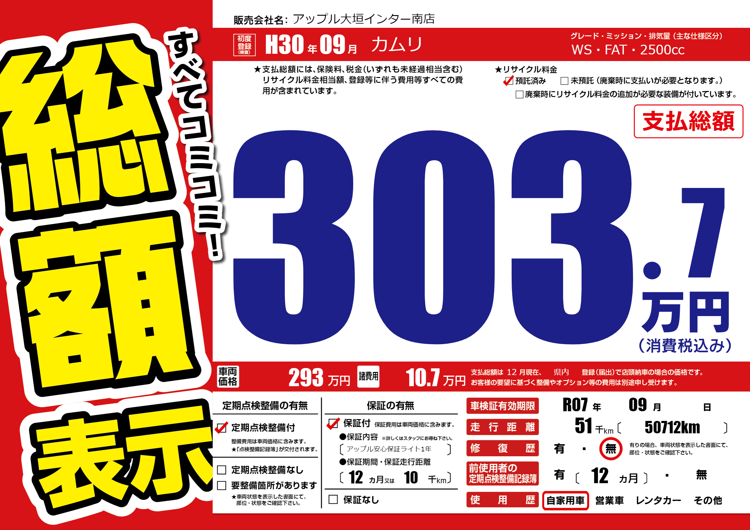 | 車検制限 | R07年 09月 - 日 | ||