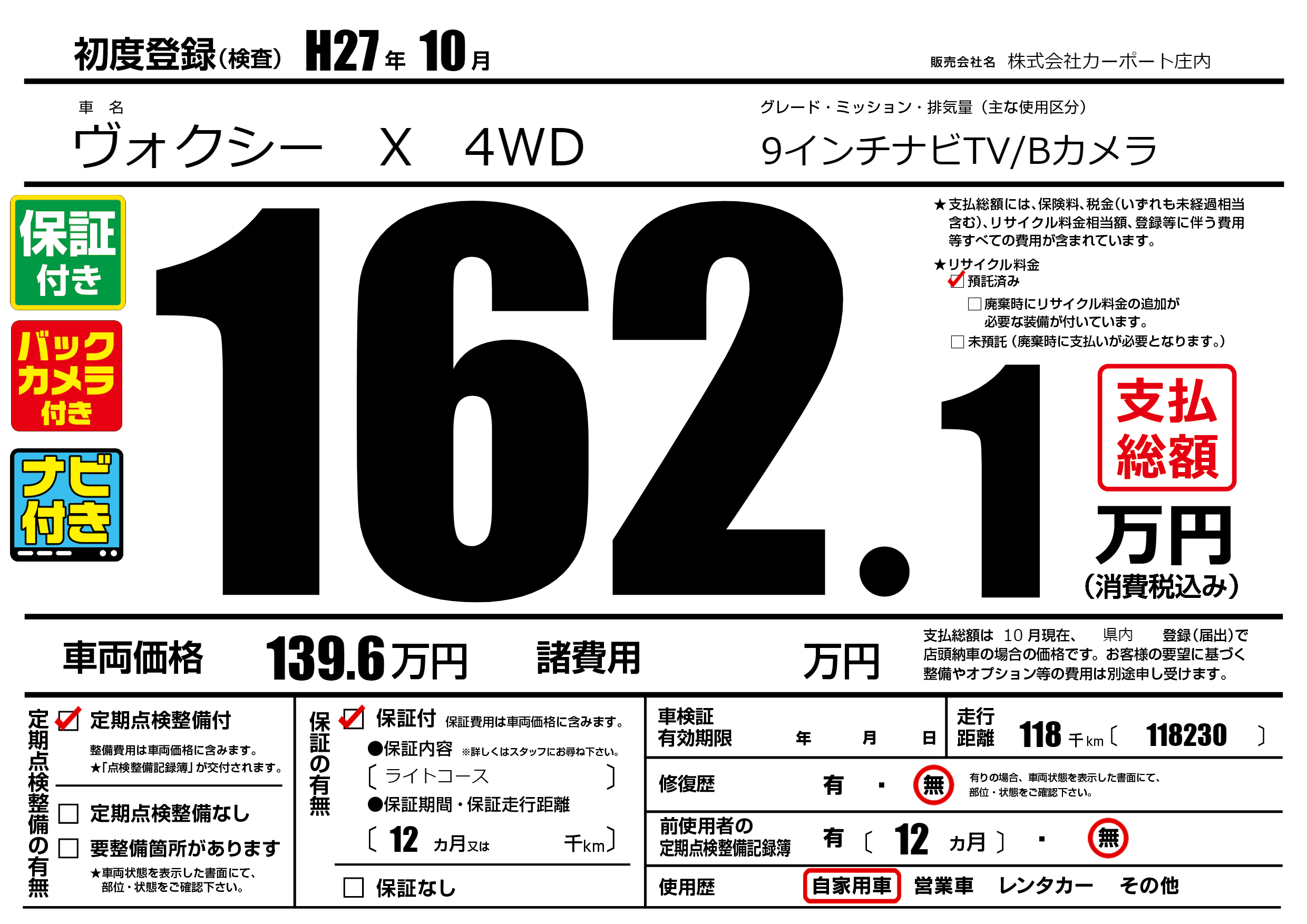 | 定期点検整備 | 定期点検整備あり | ||