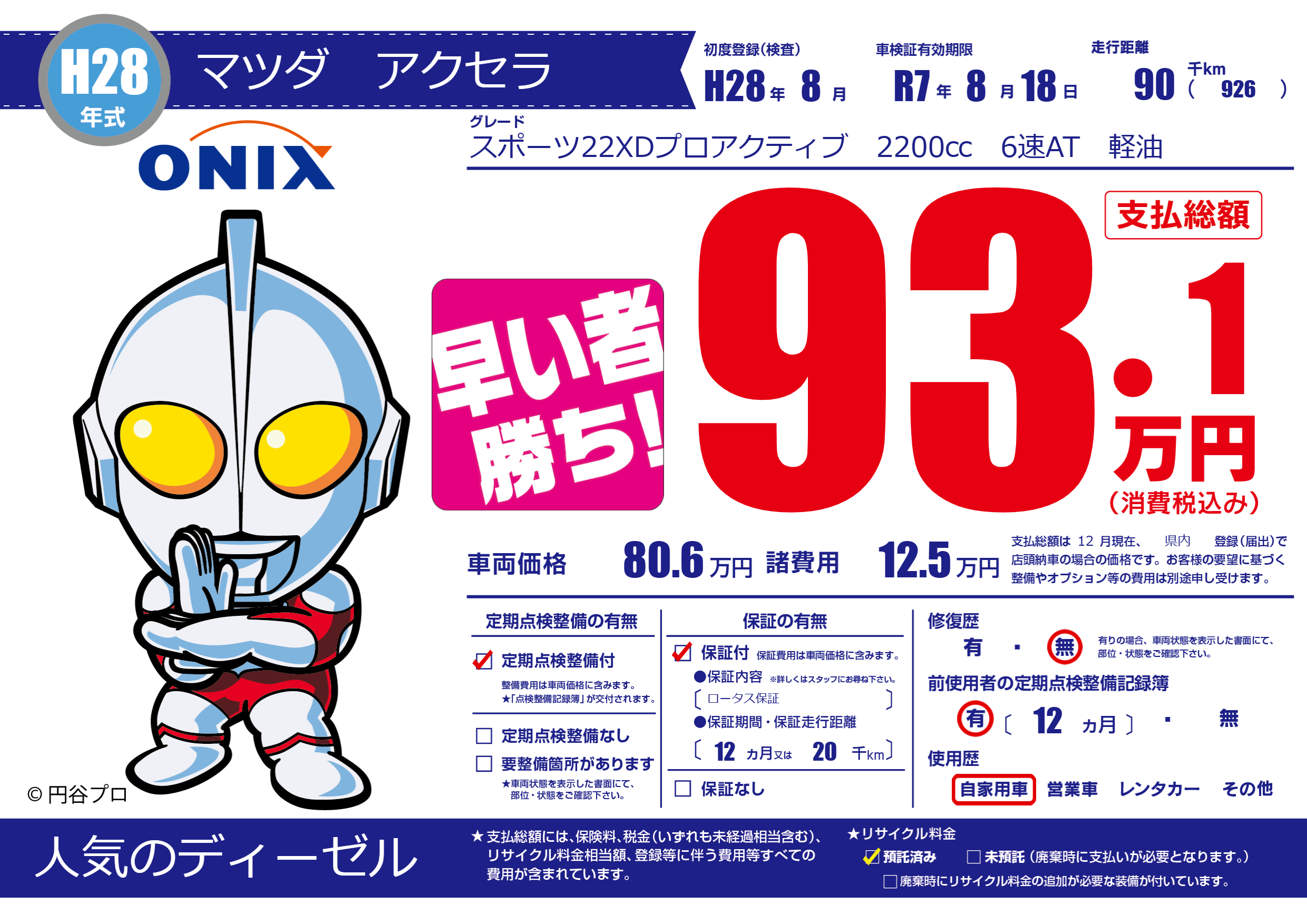 | 車名 | マツダ アクセラ | グレード ミッション 排気量 |