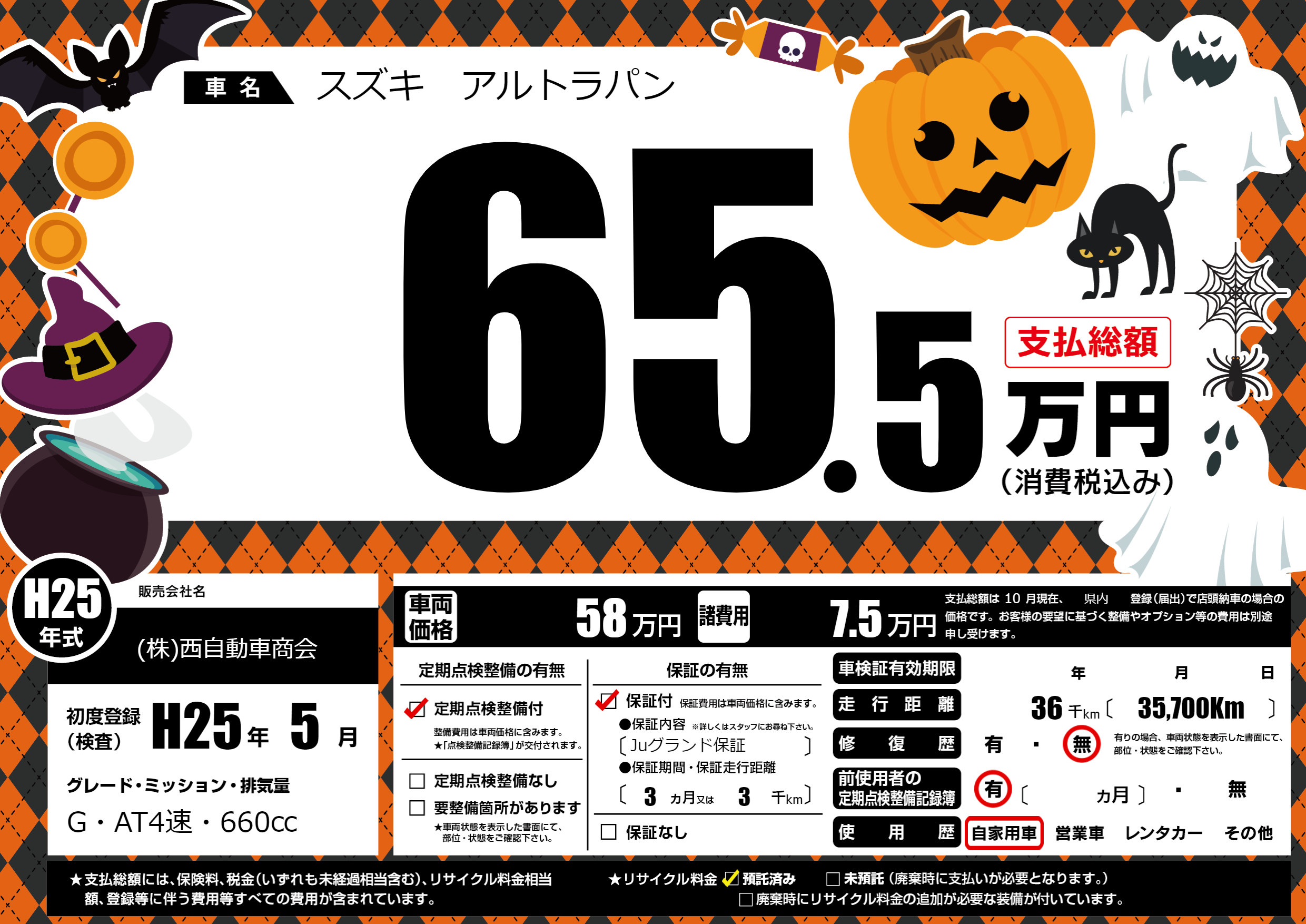 | 走行キロ | 3.6万km | 初年度登録 | H25年5月 |