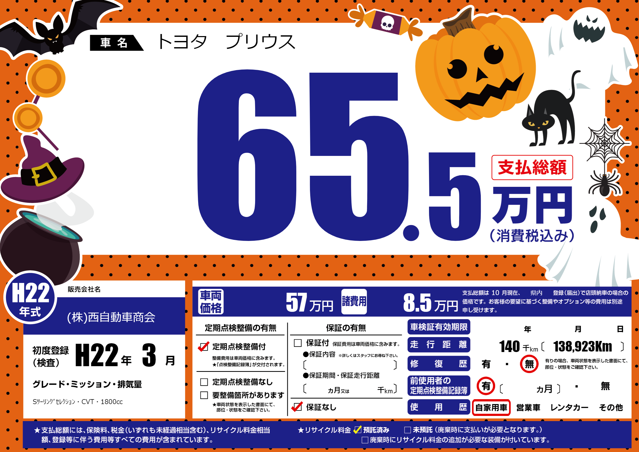 | 走行キロ | 14万km | 初年度登録 | H22年3月 |