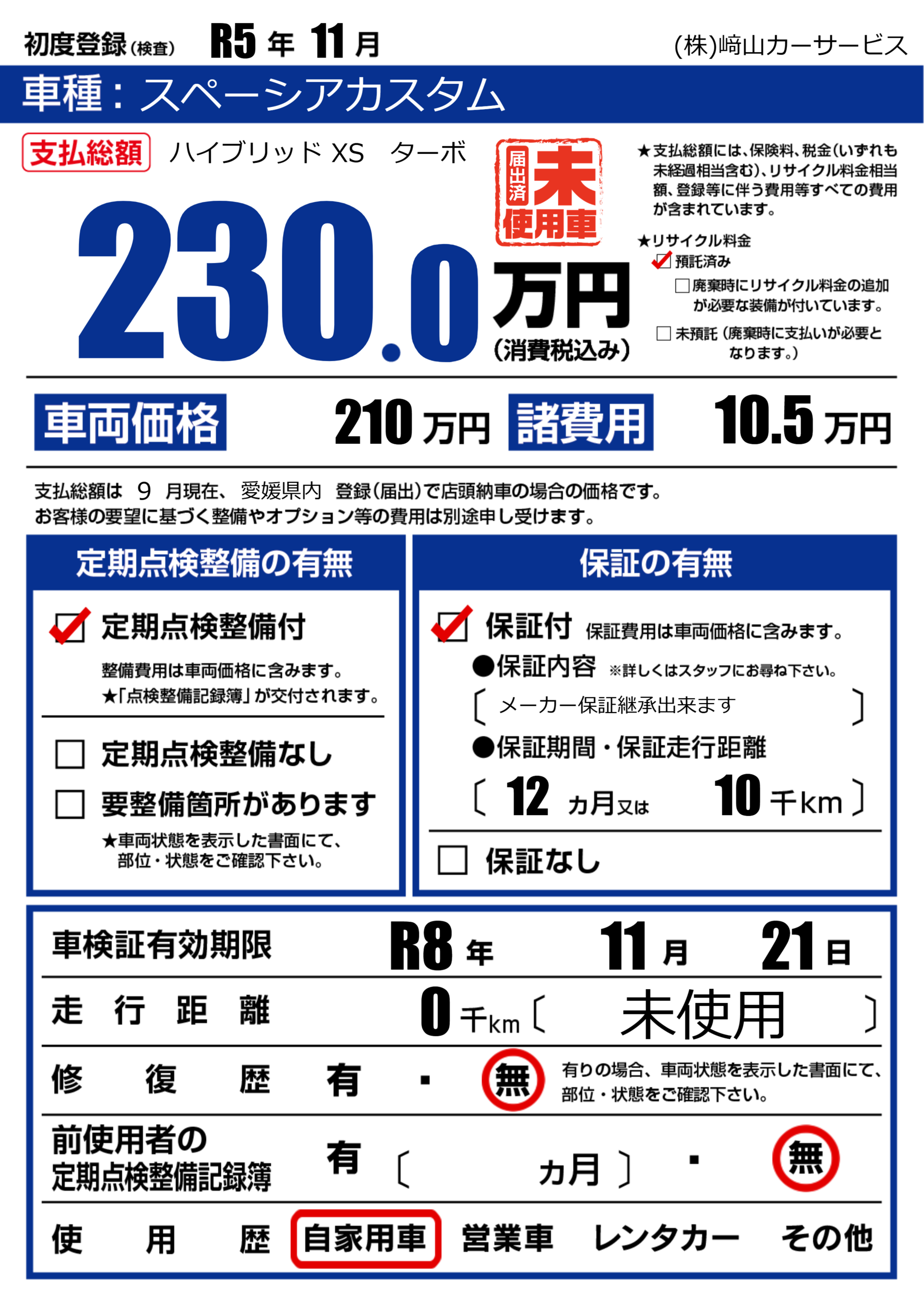 | 車検制限 | R8年 11月 21日 | ||