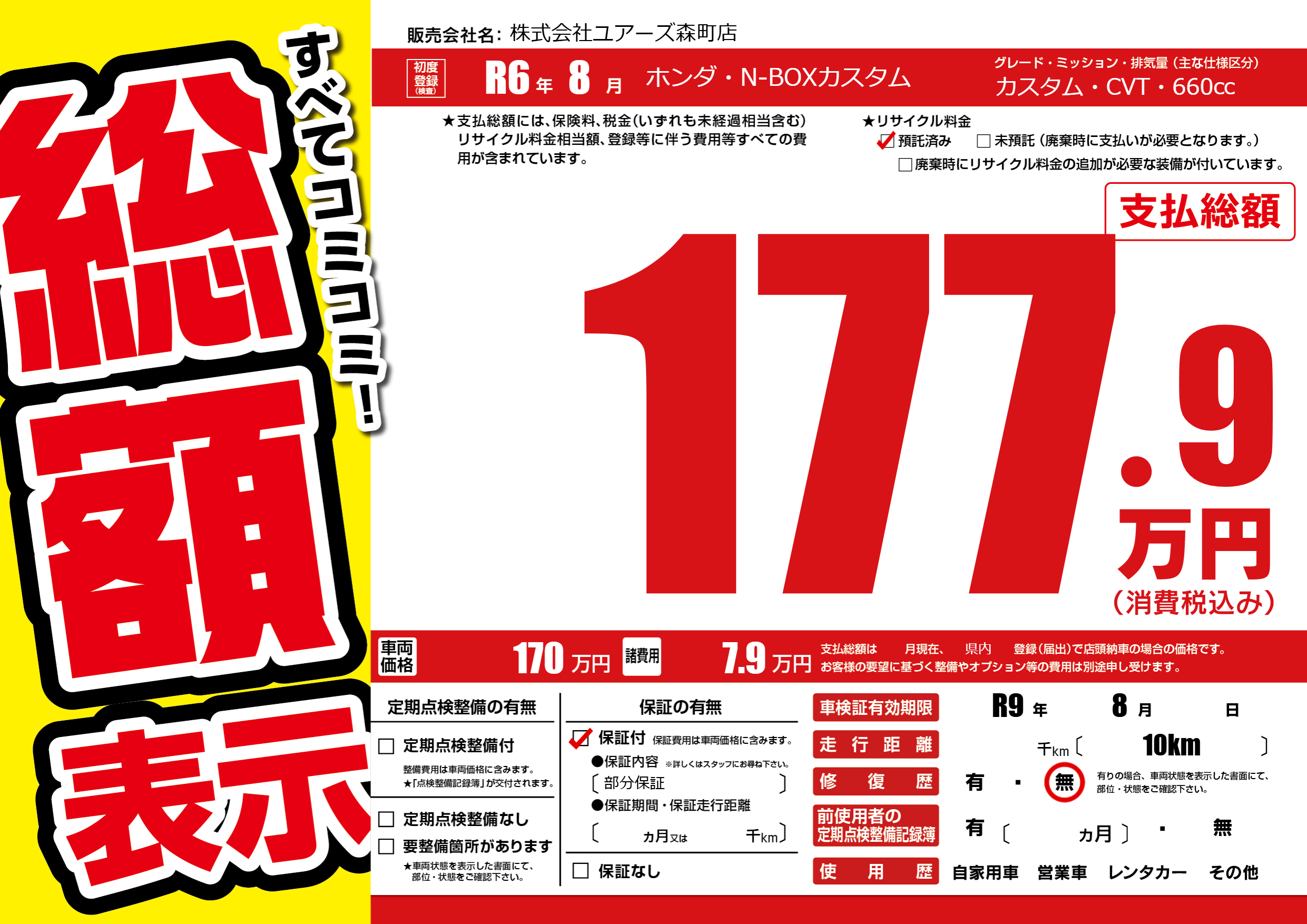 なし | 車検制限 | R9年8月---月 |