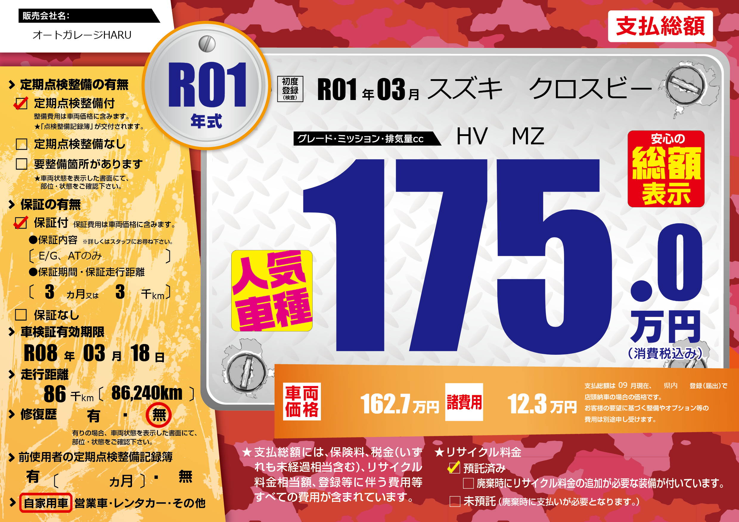 | 車検制限 | R08年 03月 18日 | ||
