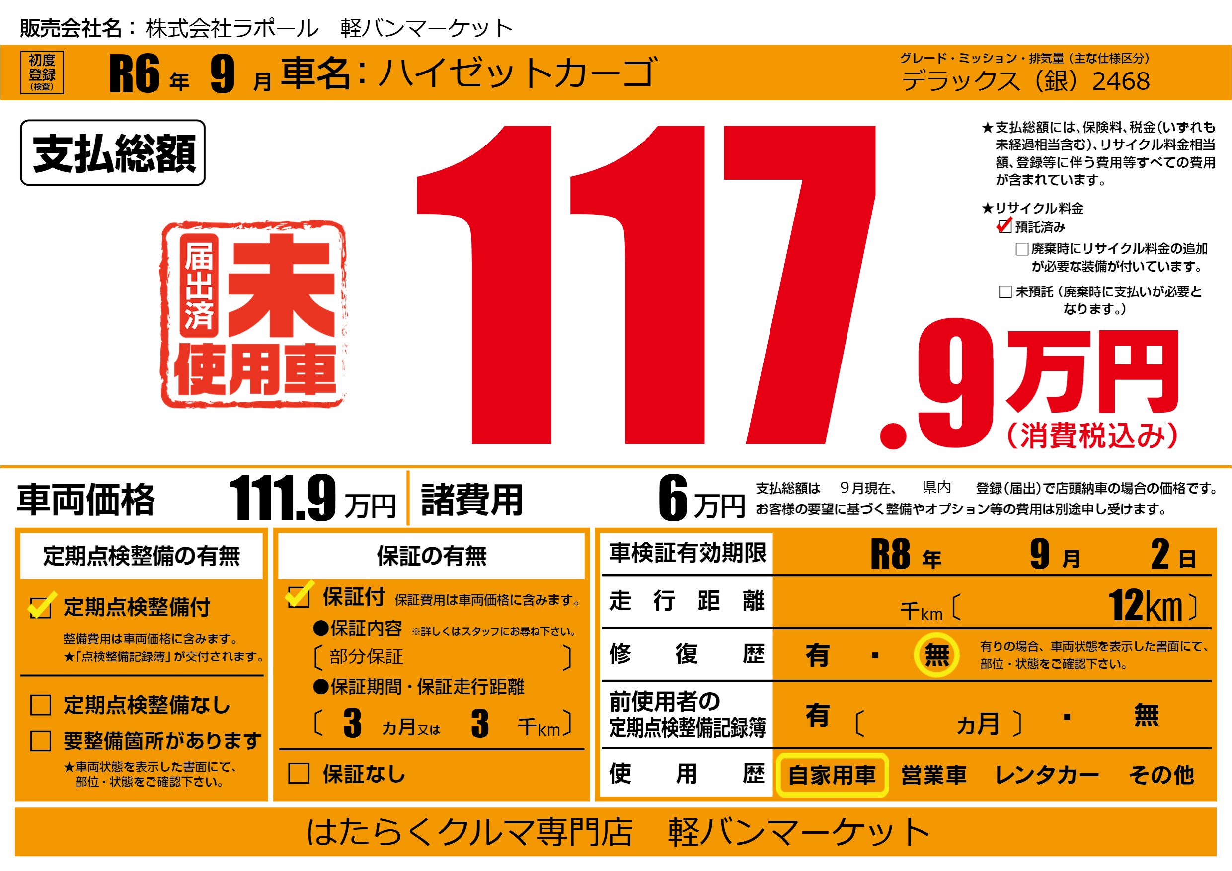 なし | 車検制限 | R8年9月2月 |